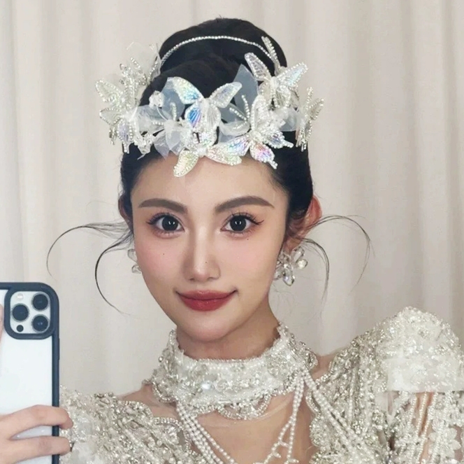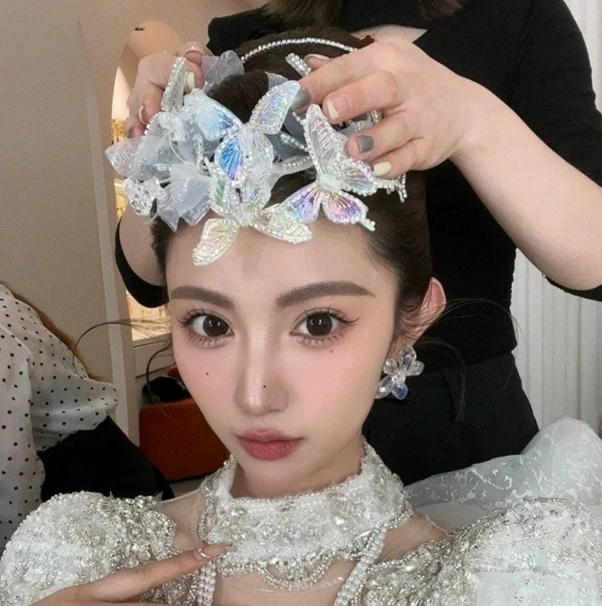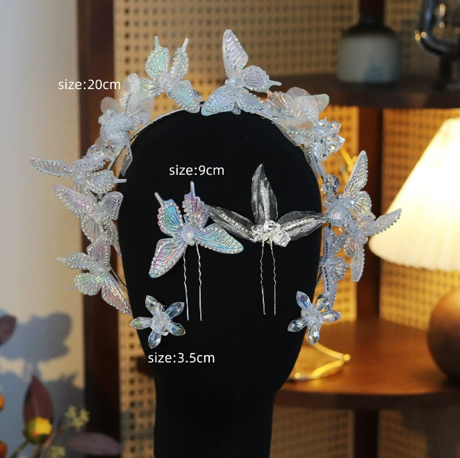 新娘头饰超仙幻彩蝴蝶手工时尚气质发箍套装个性礼服写真头冠配饰