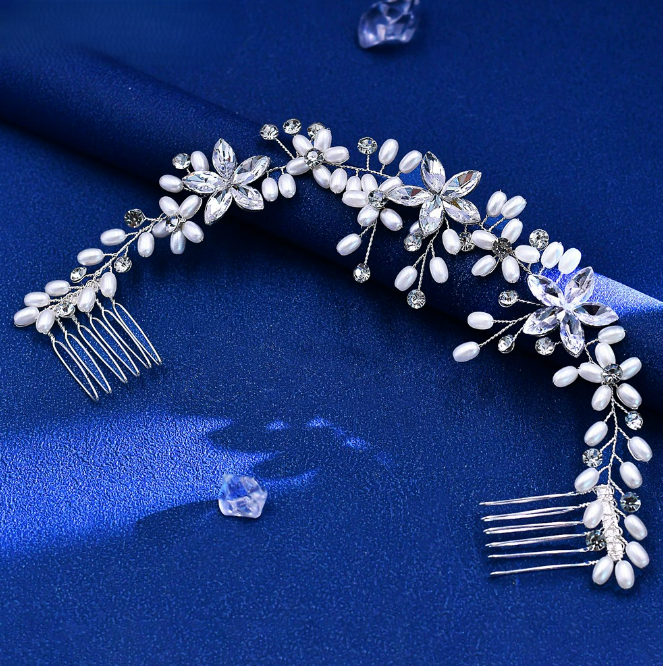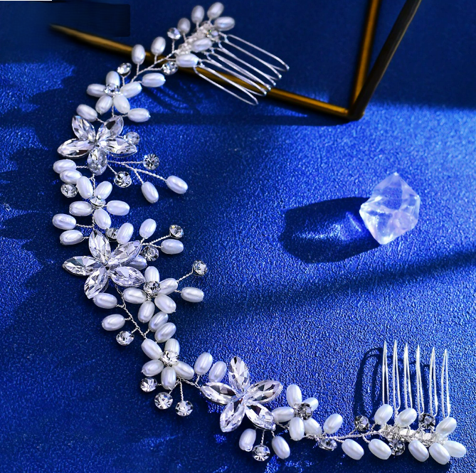 新娘婚礼波西米亚轻奢手工编织发梳水钻珍珠简约头饰