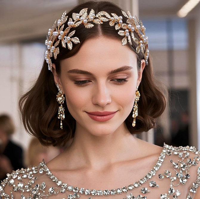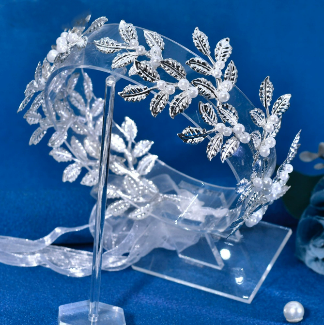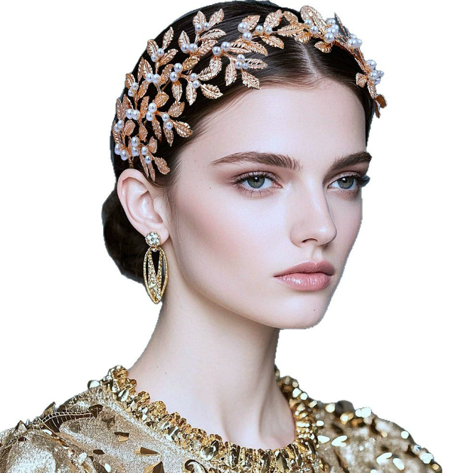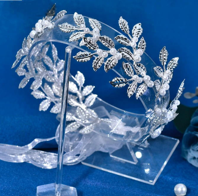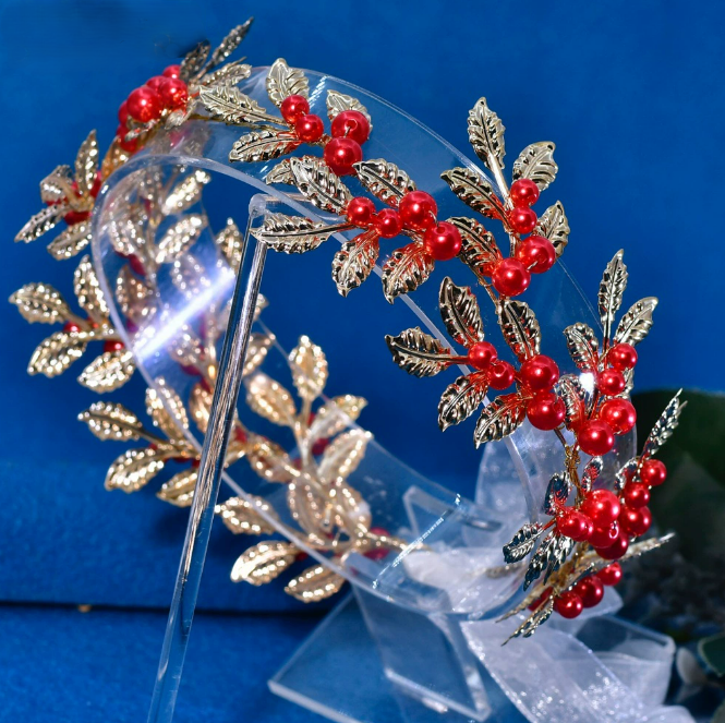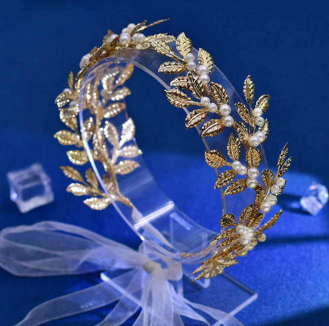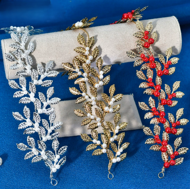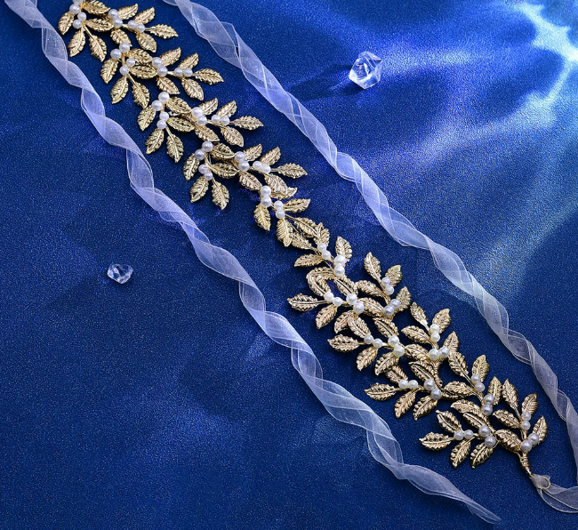 新娘盘头发饰复古风合金叶子珍珠发箍影楼礼服造型配饰