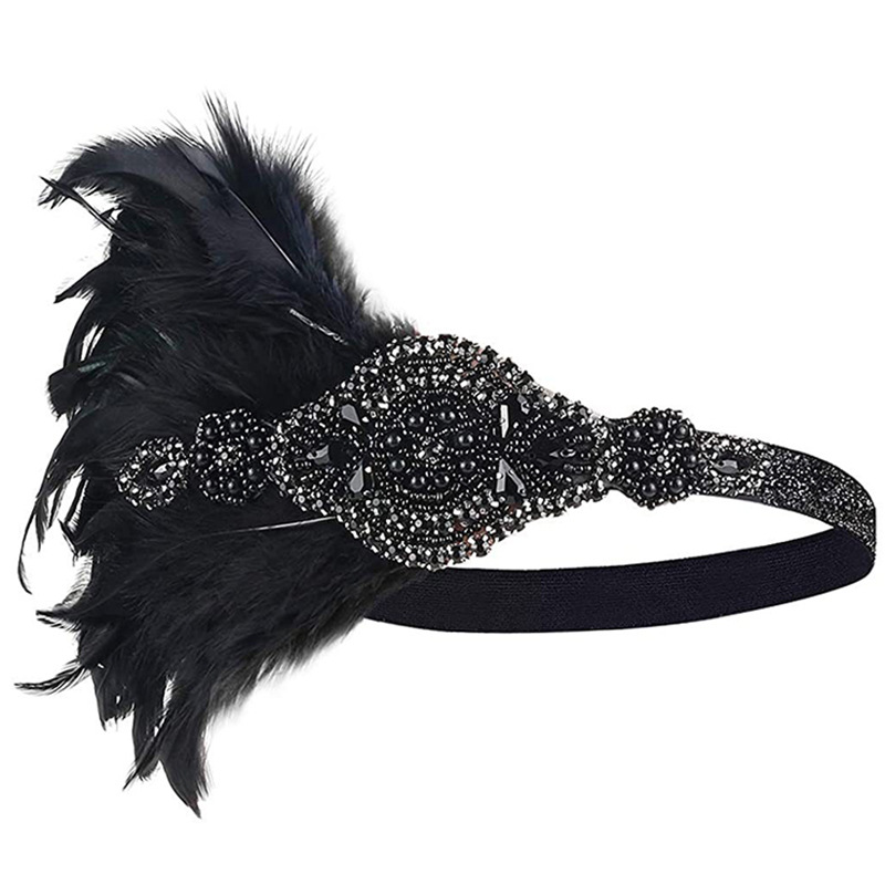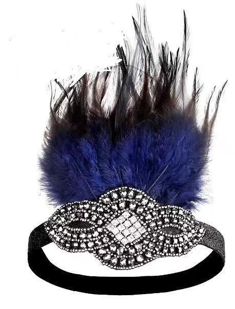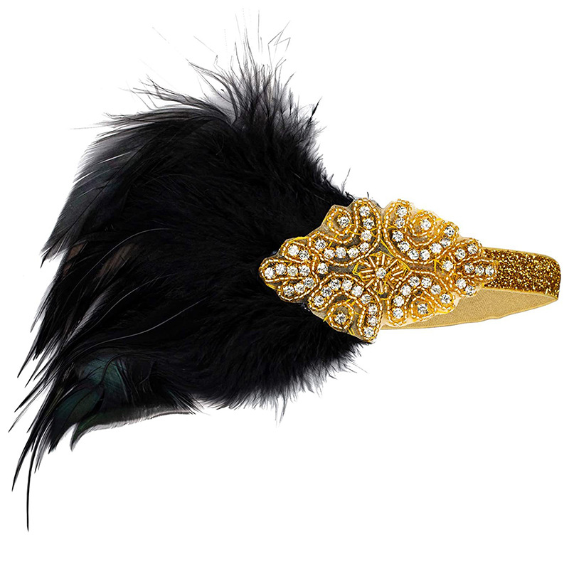 新款化妆舞会发带女士镶钻羽毛发带印第安风头饰布艺松紧头带批发