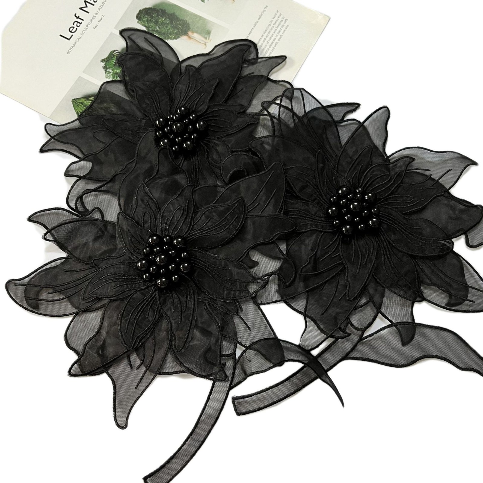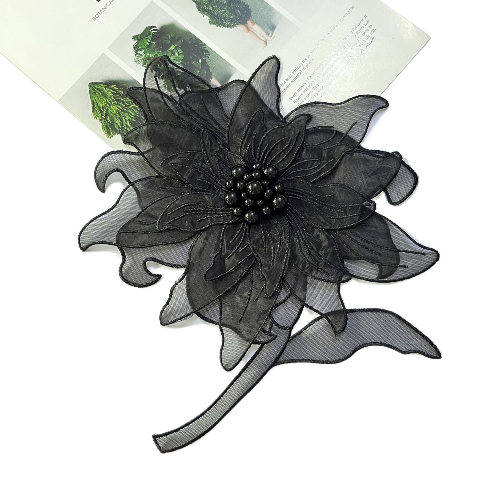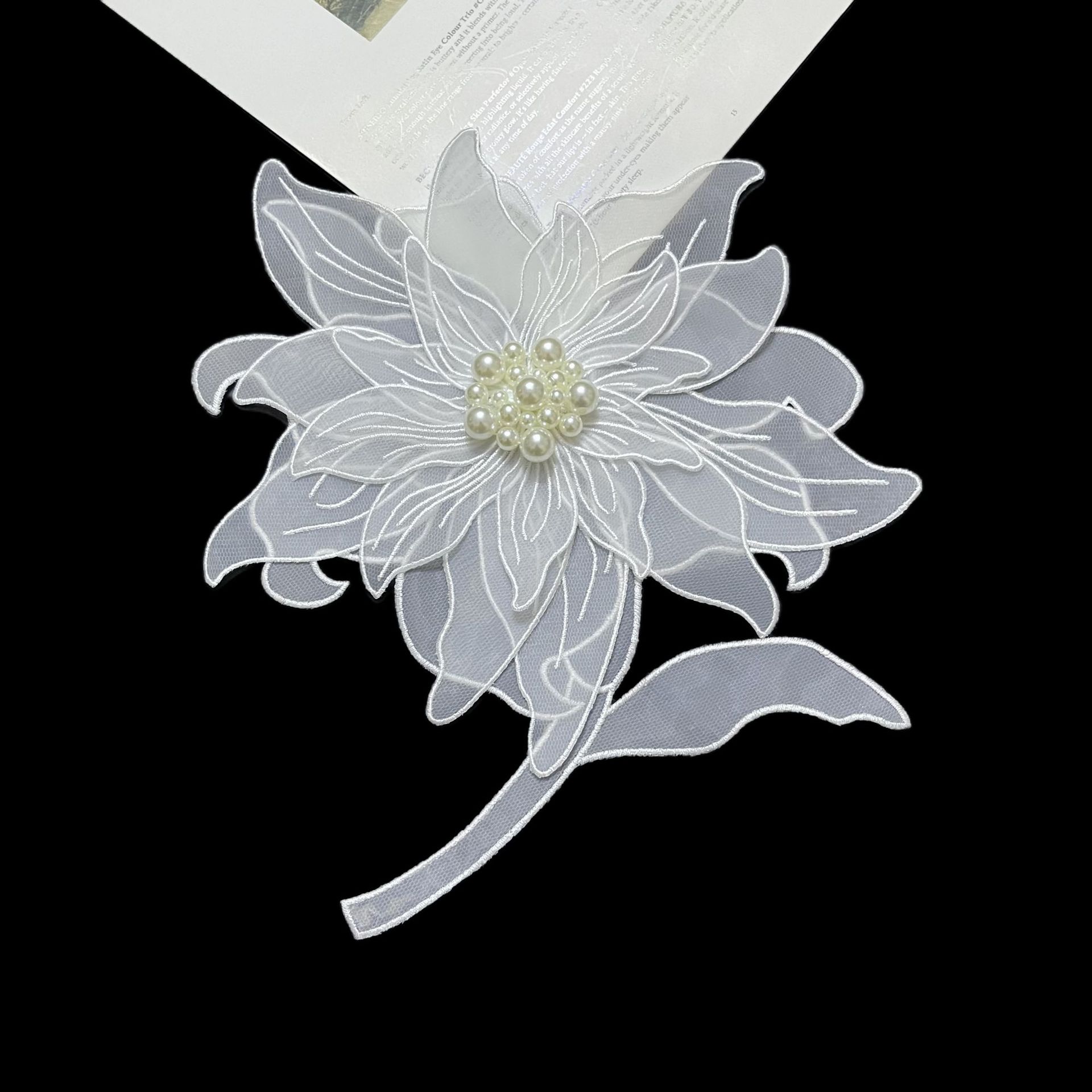 • 新款多层刺绣片立体手工珍珠花朵服装辅料