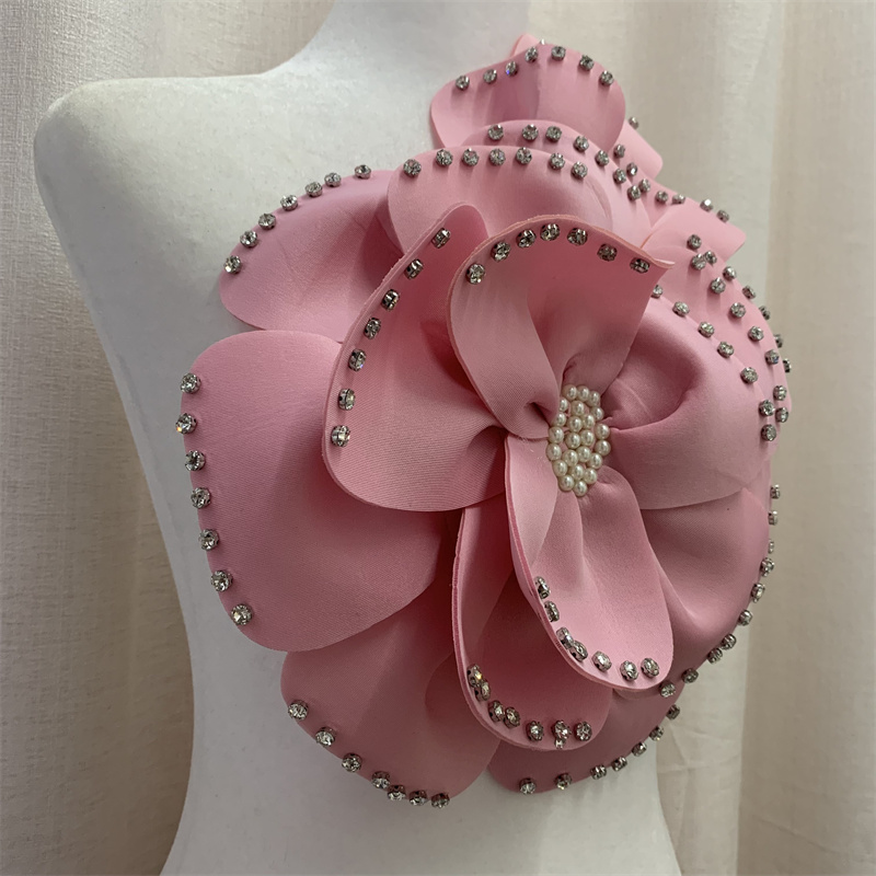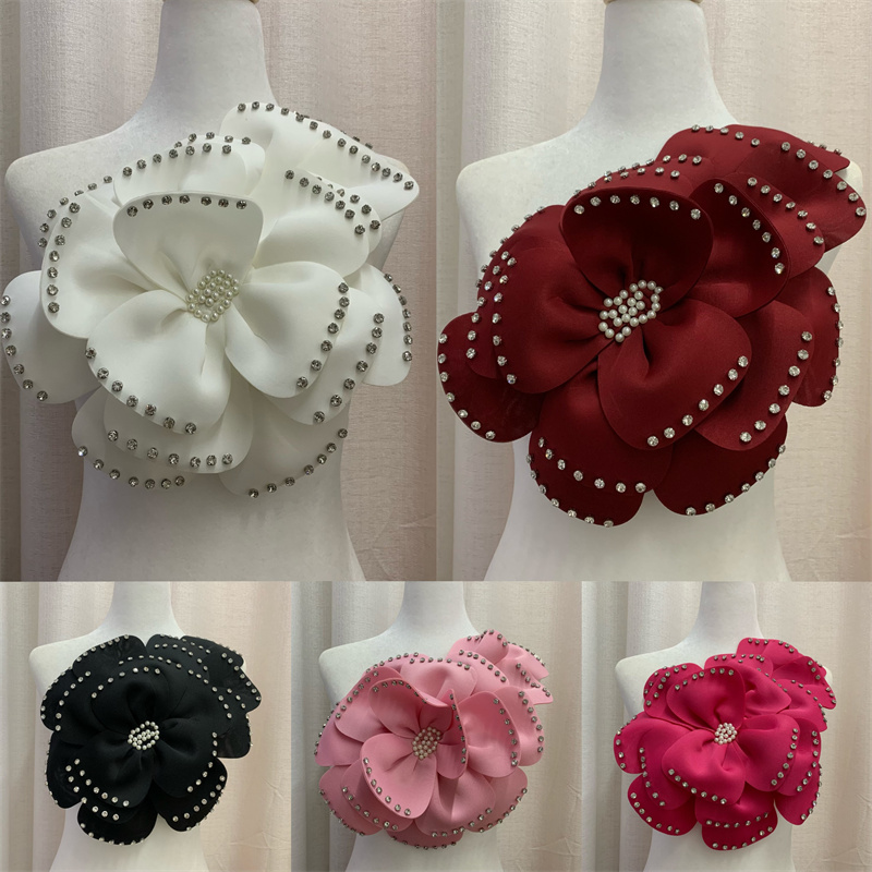 新款多层立体钉珠高档布艺大花朵DIY衣服连衣裙头饰发饰胸花饰品