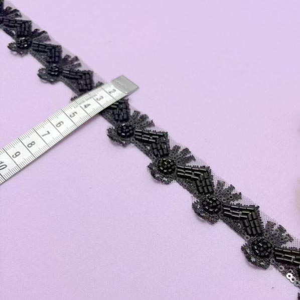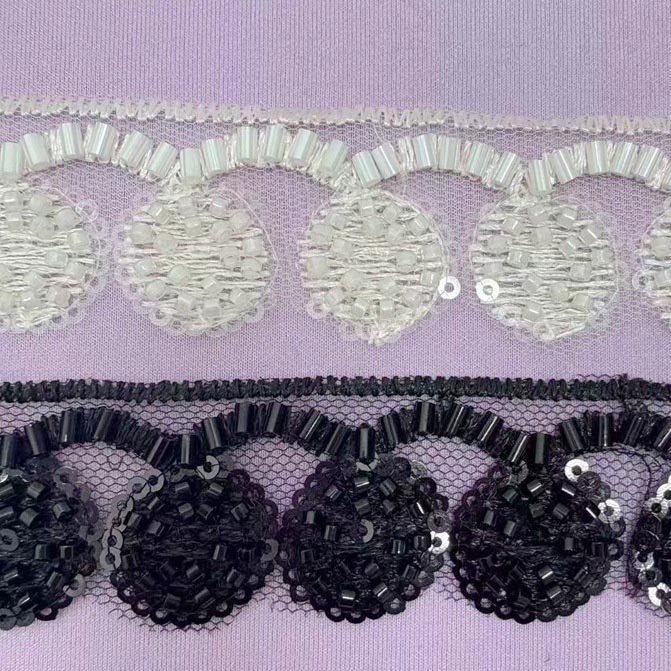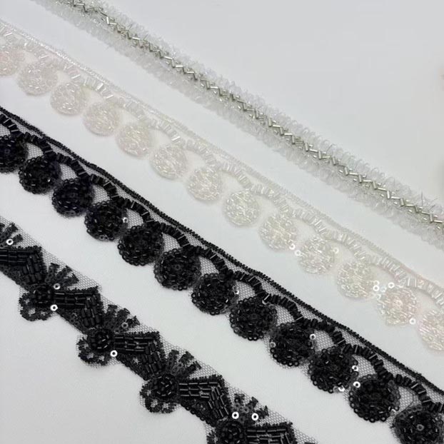 •  新款小香风钉珠网纱织带珍珠钉钻花边