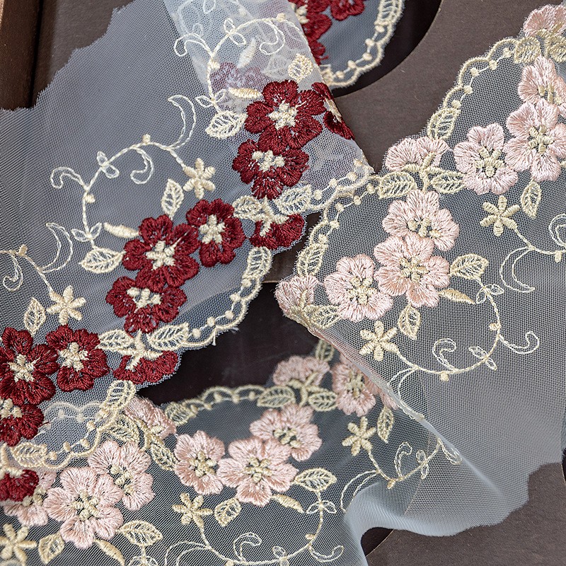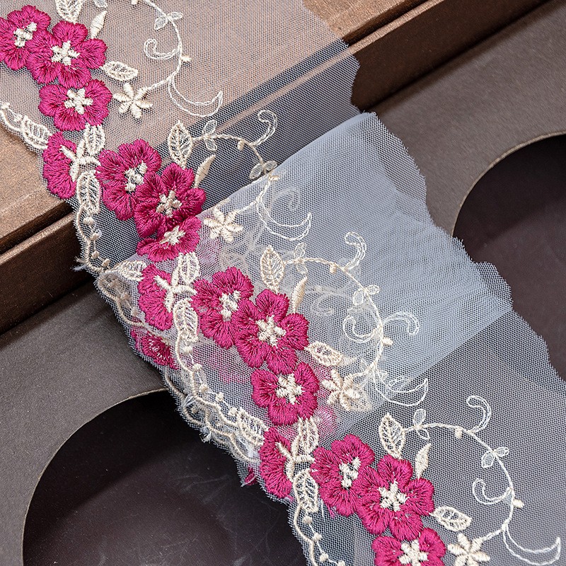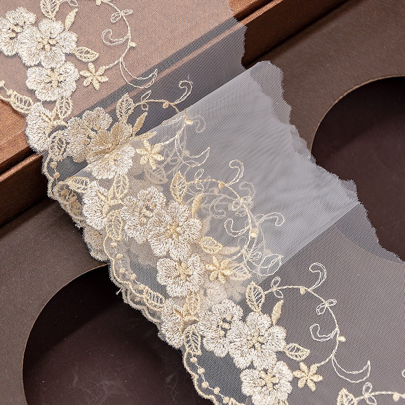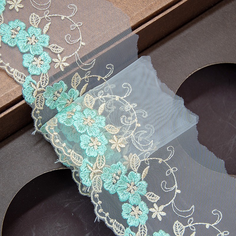 新款彩色网纱蕾丝花边婚纱服装辅料电脑刺绣蕾丝花边 网布辅料