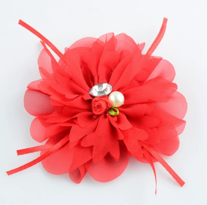 • 新款手工玫瑰珍珠雪纺花 儿童头饰服饰鞋帽装饰配件