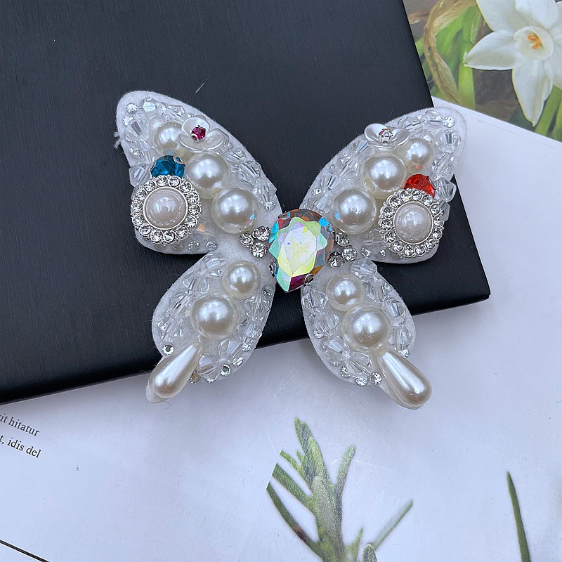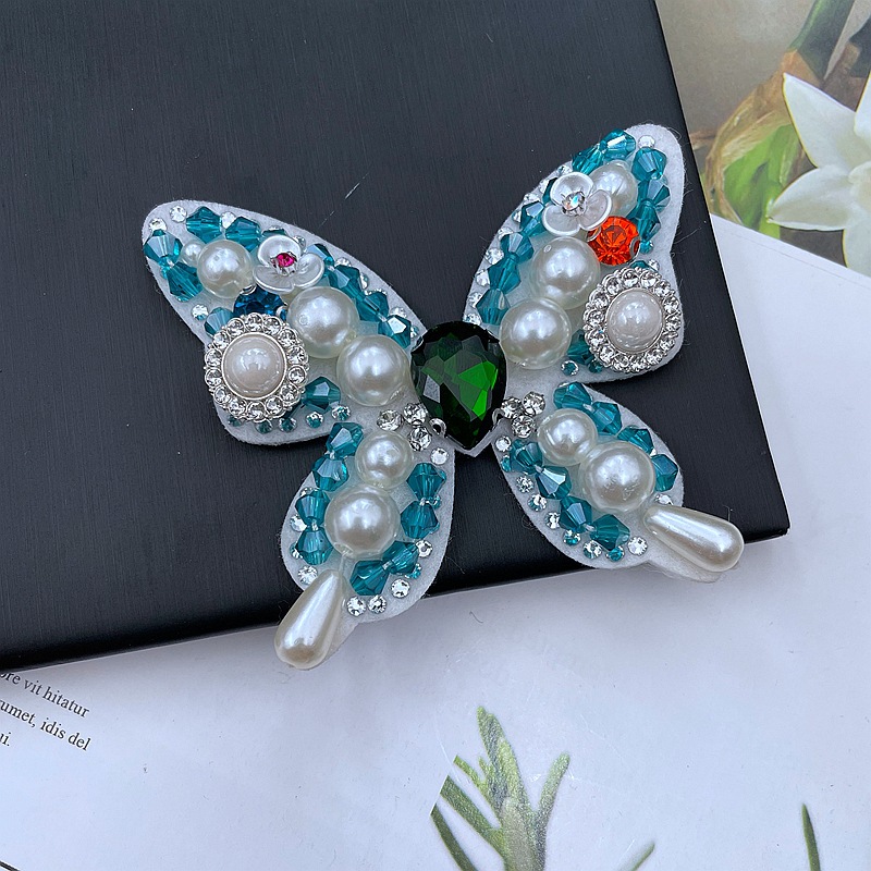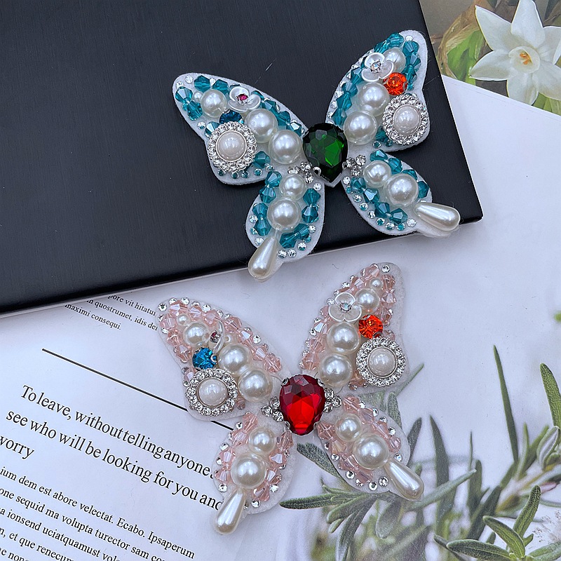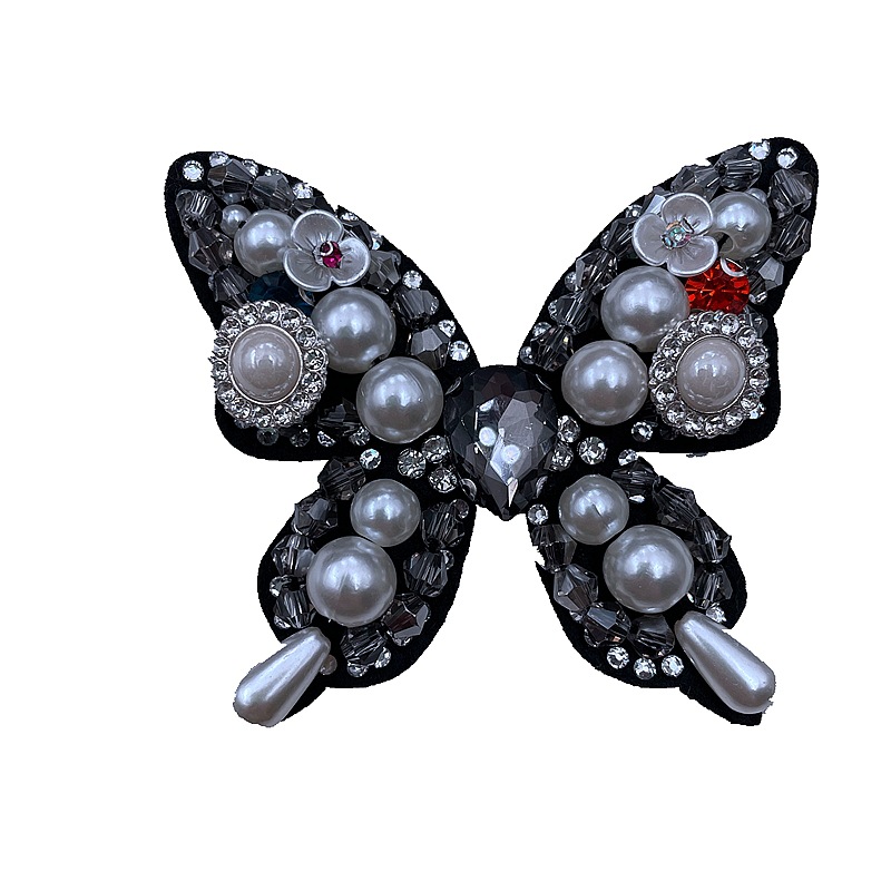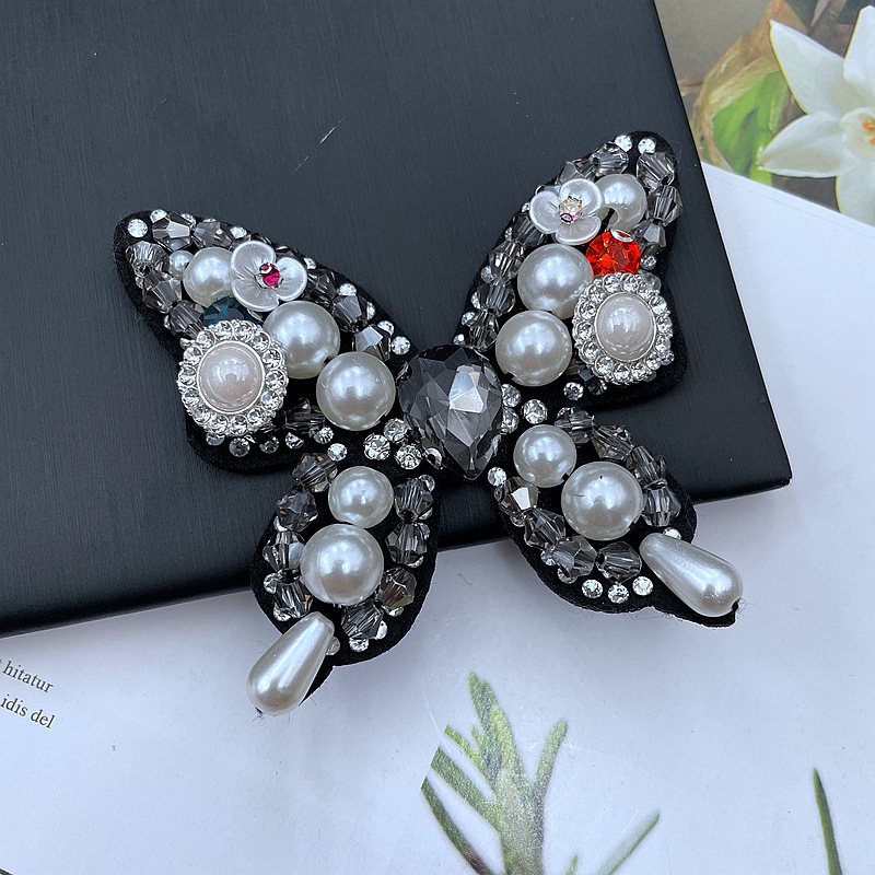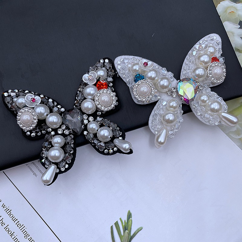 新款手工钉珠精美时尚水钻珍珠蝴蝶布贴服装包包配饰DIY辅料