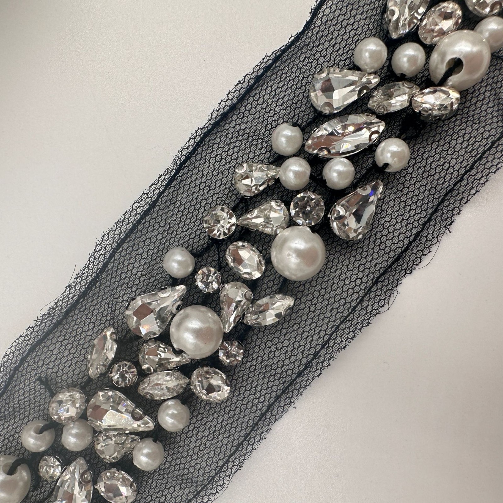 新款手工钉珠网底花边珍珠钻石diy服饰装饰 婚纱裙边腰围旗袍辅料