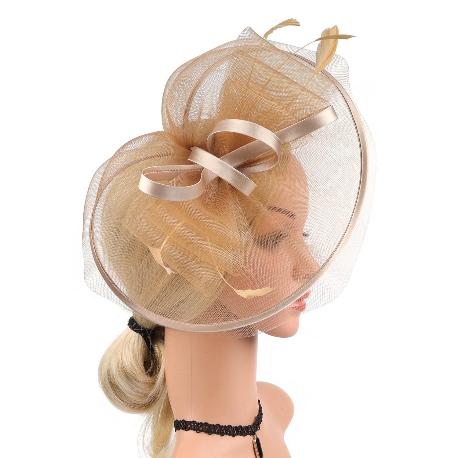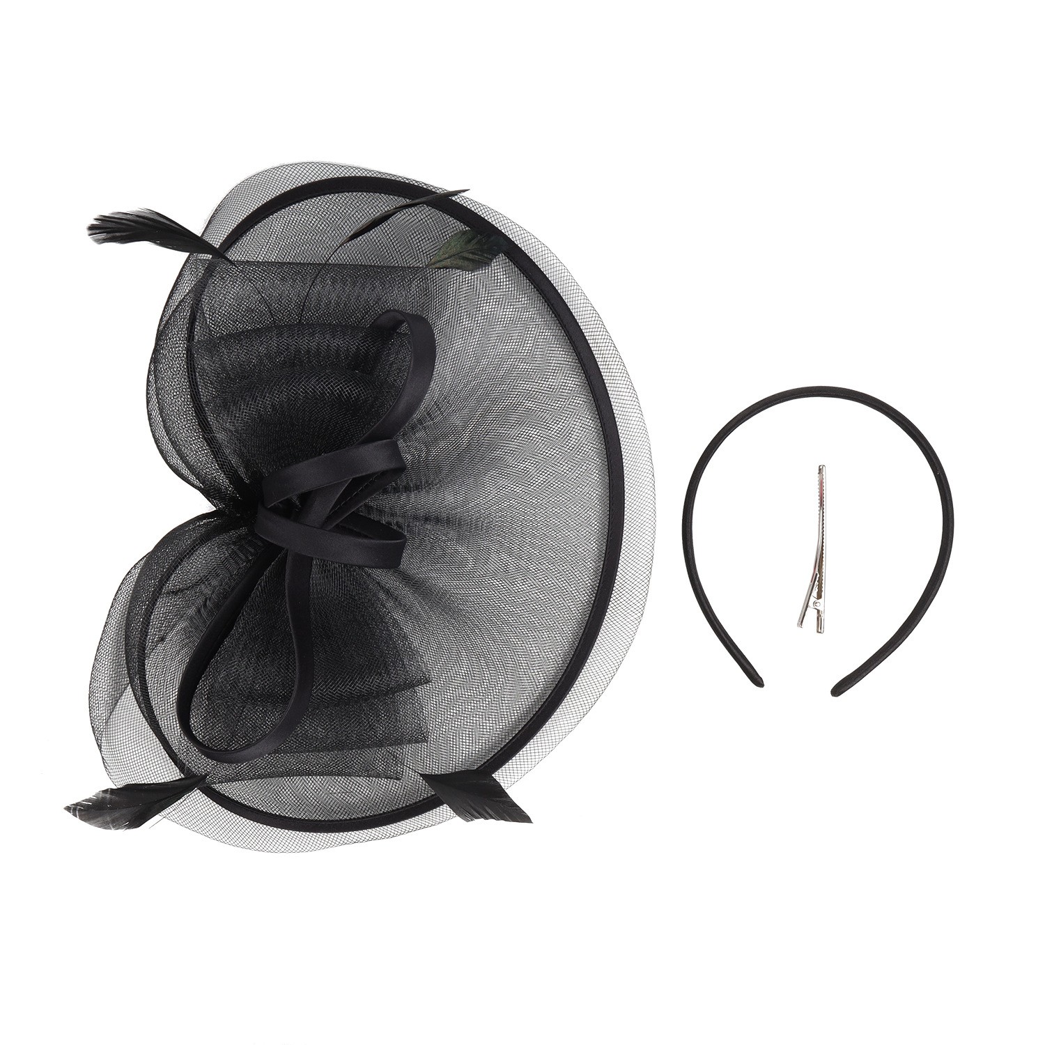 新款新娘发饰头花发箍跨境热销羽毛网纱大礼帽头饰