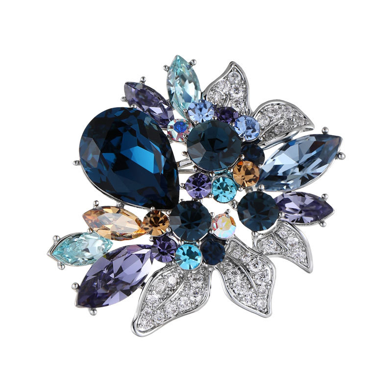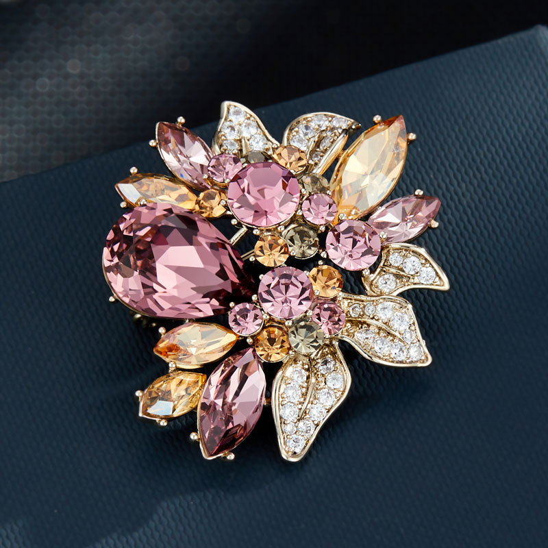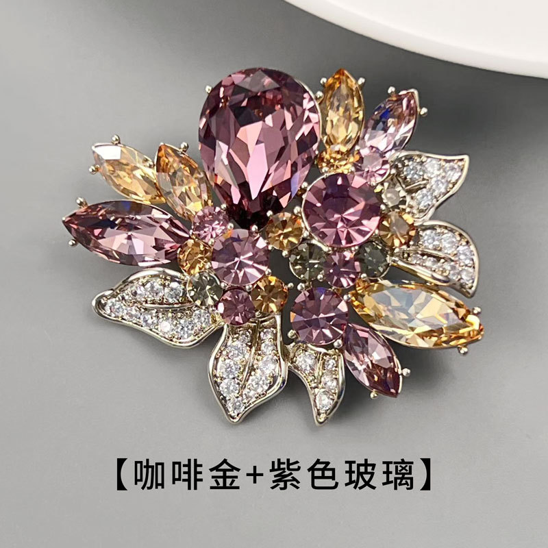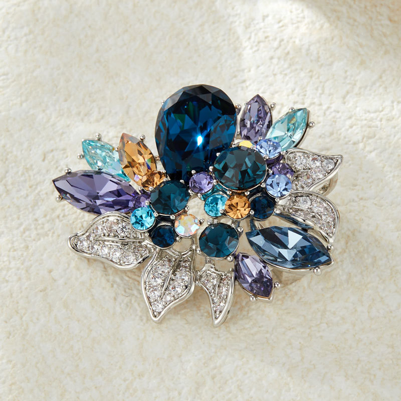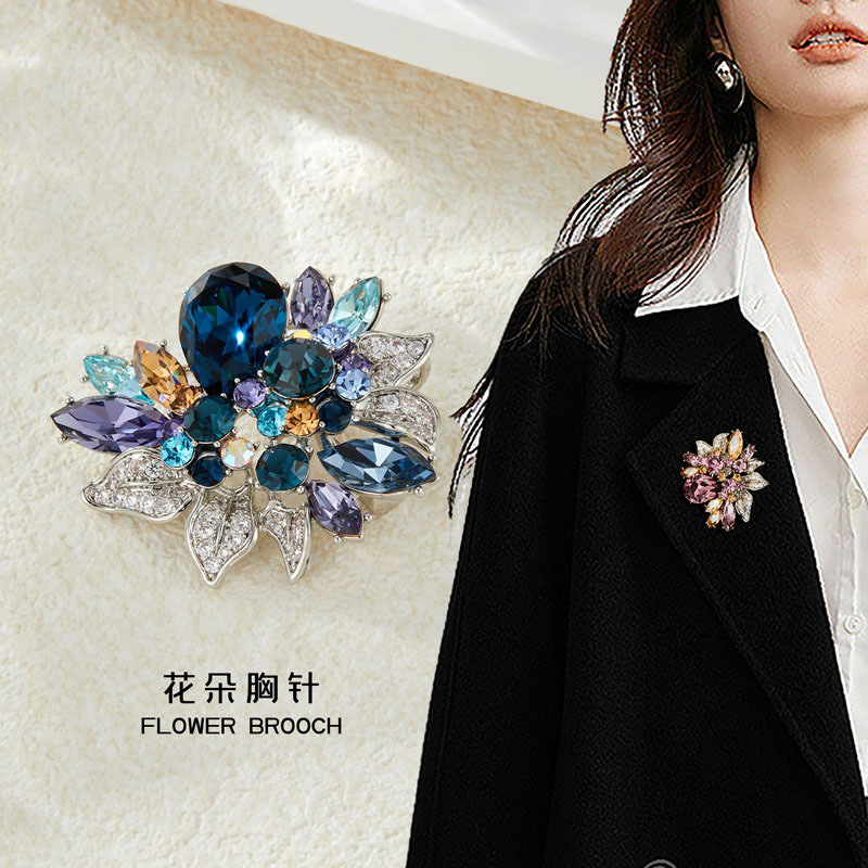 新款欧美风水晶花朵胸针小众高级感植物胸花西装外套配饰精致别针