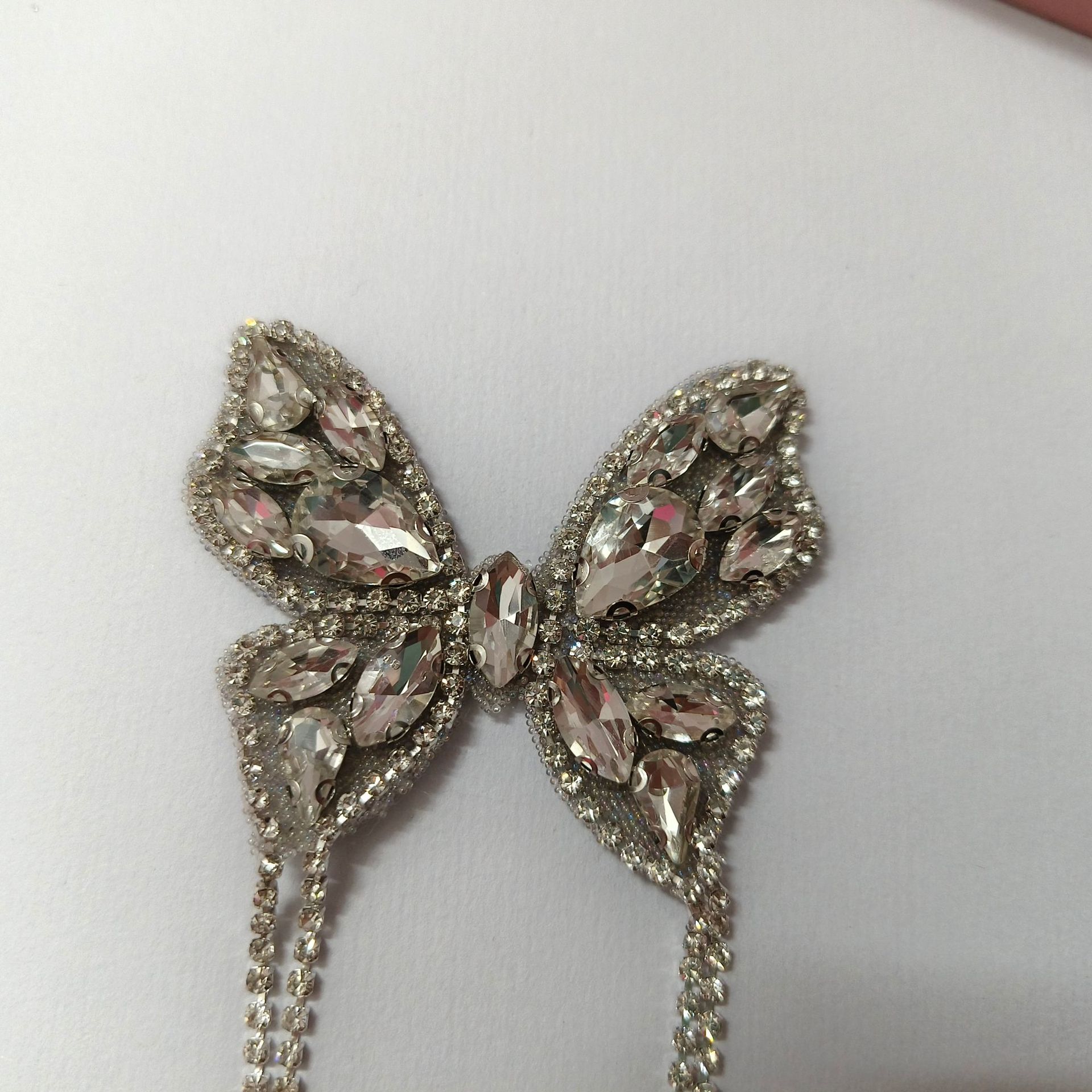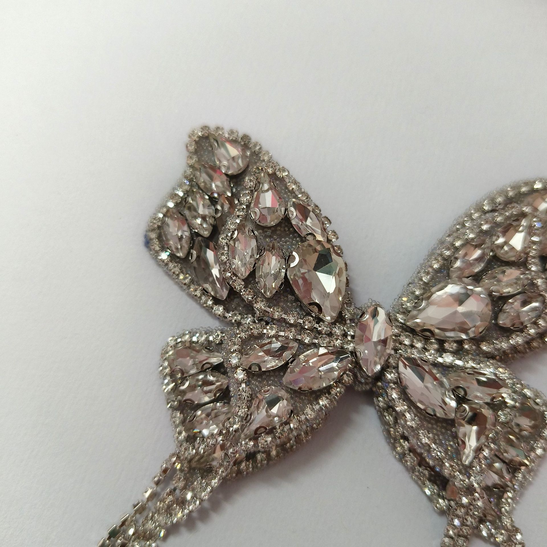 新款水钻手工串珠双层蝴蝶结布贴布服装配饰装饰配件diy补丁