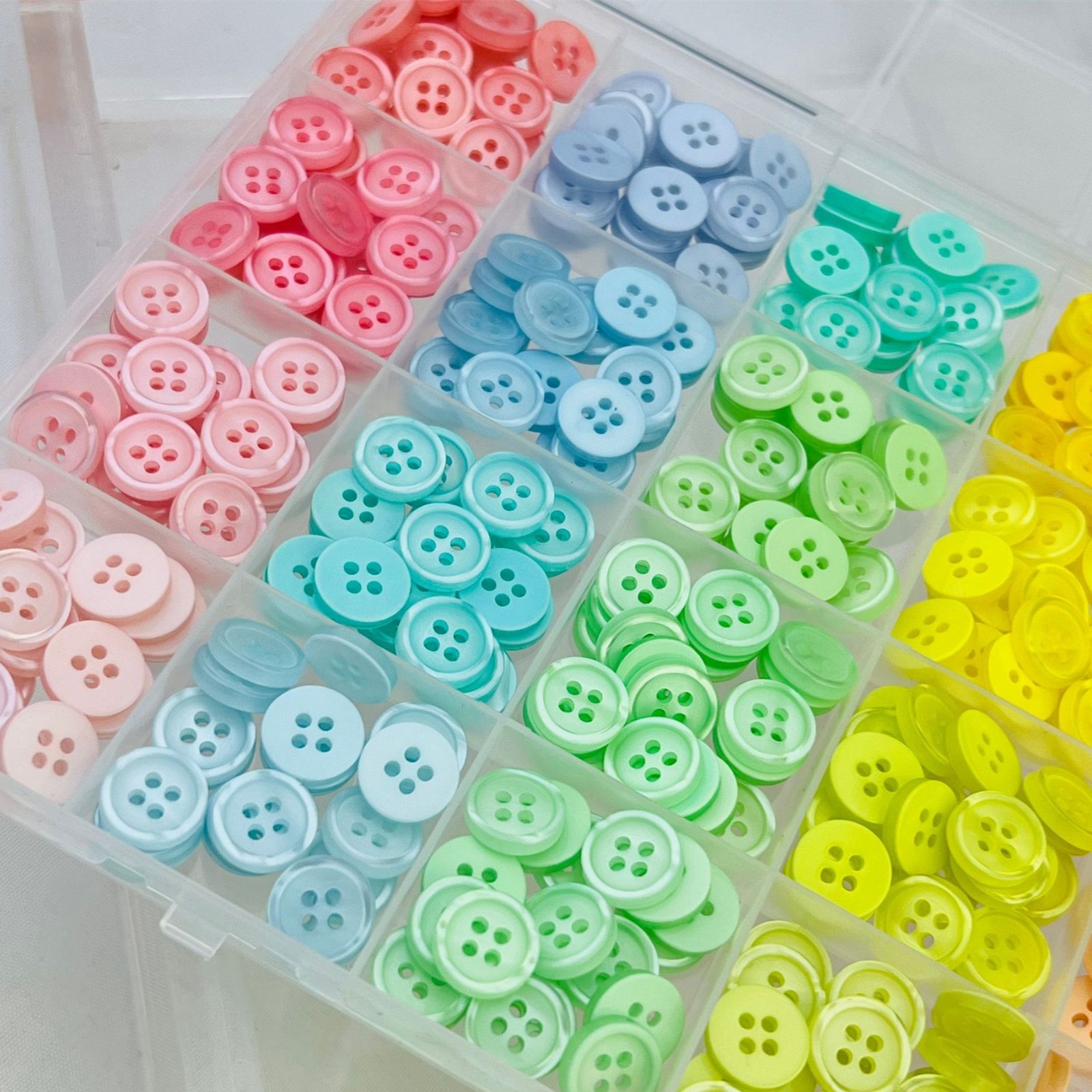新款珠光马卡龙色四眼树脂窄侧纽扣衬衫服装手工配饰
