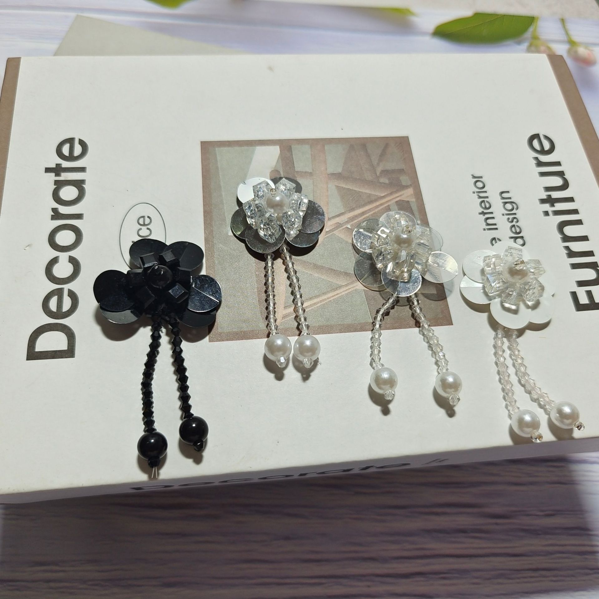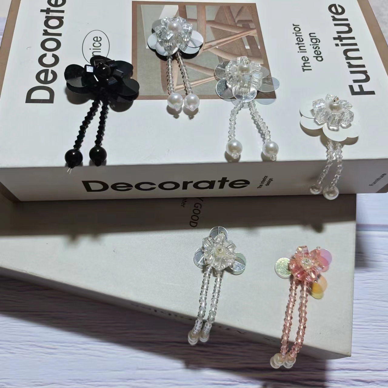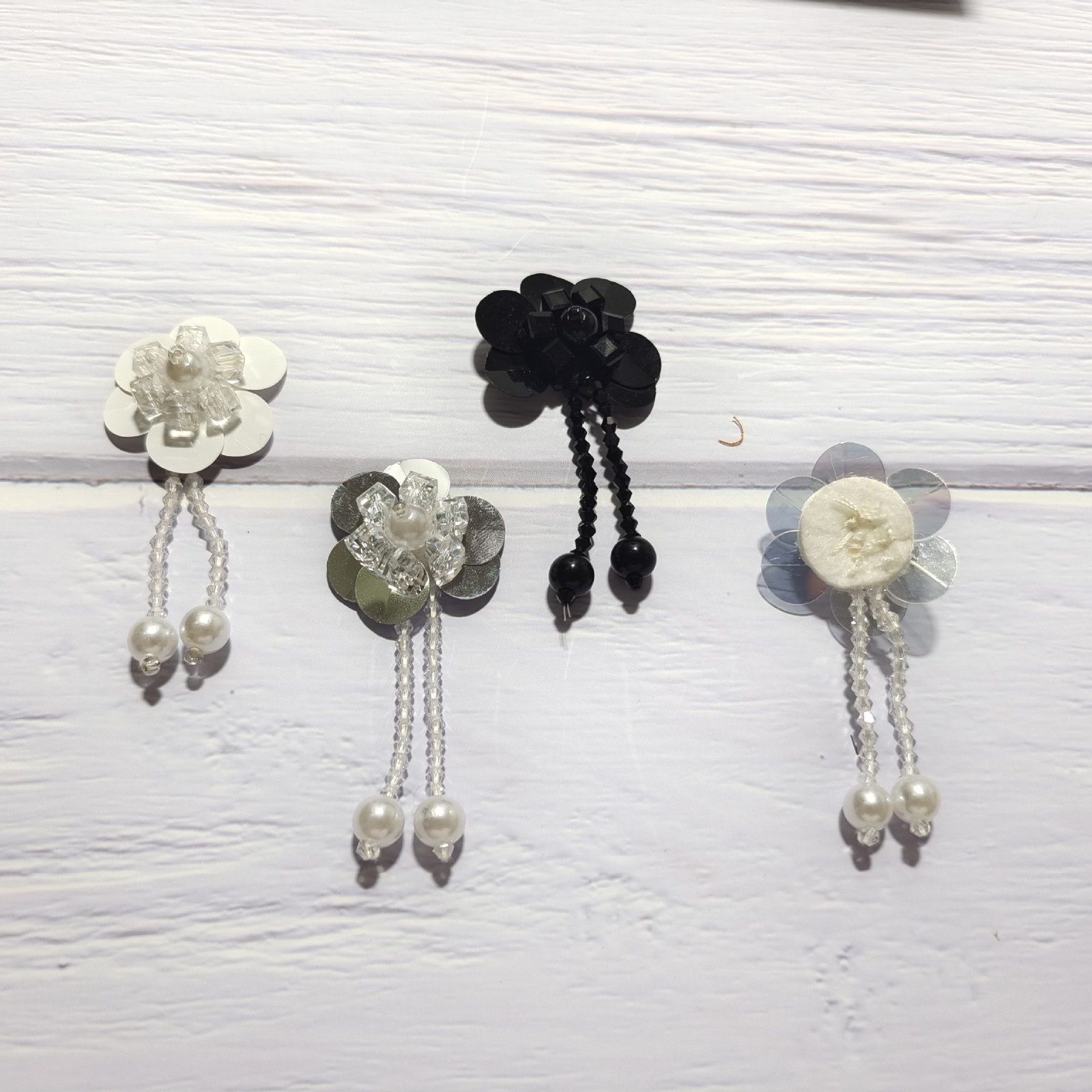 新款珠子水晶小花流苏布贴小香风鞋帽装饰DIY配件贴布