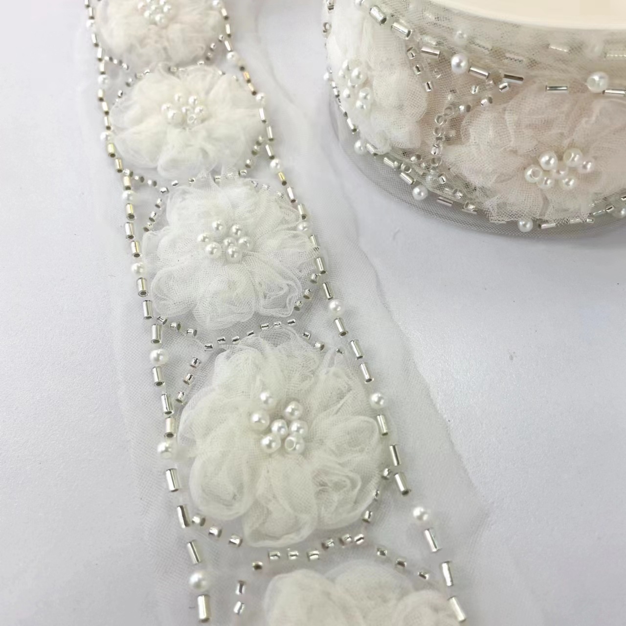 新款立体钉珠花边带 婚纱礼服服装辅料 童装女装衣帽饰品 DIY手工