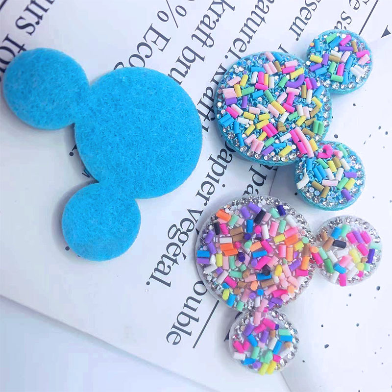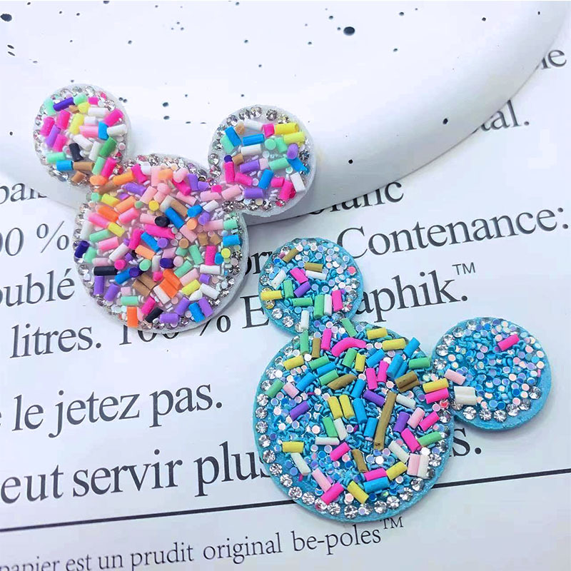 新款米奇软陶布贴亮片贴片发箍发夹发饰鞋子衣服配件DIY饰品配件