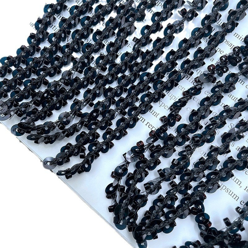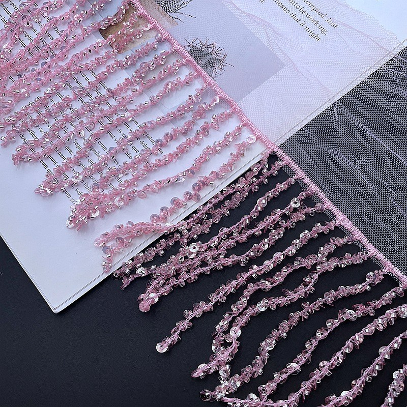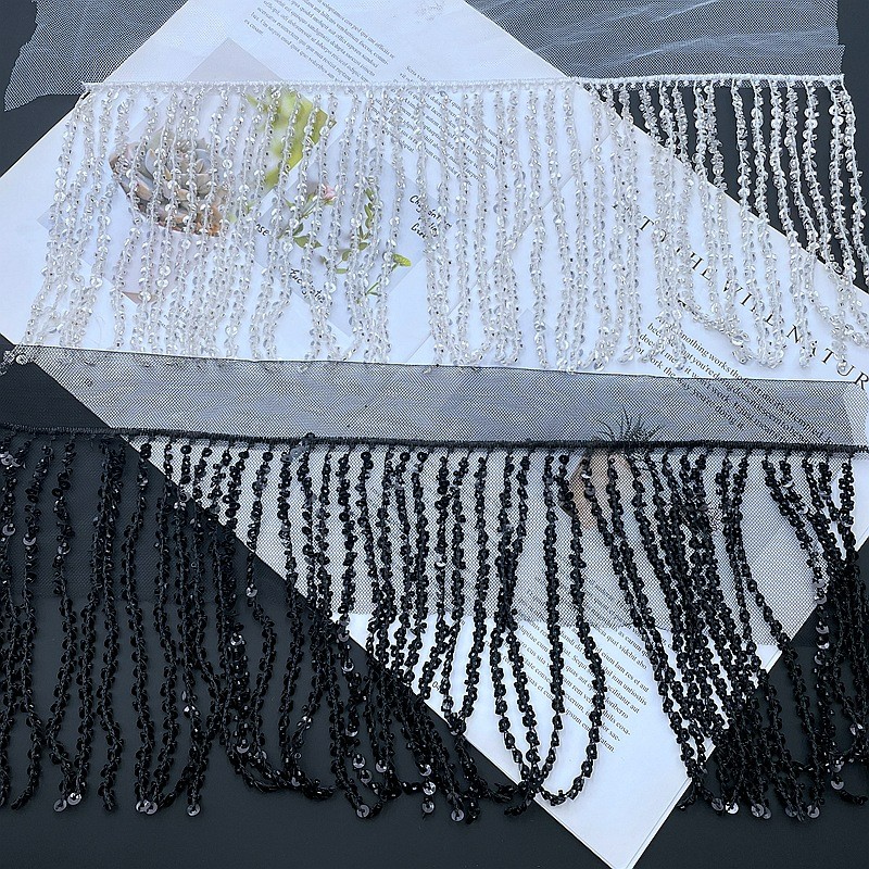 新款网状机绣亮片米珠流苏吊珠蕾丝舞裙装饰DIY配件