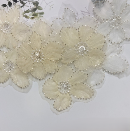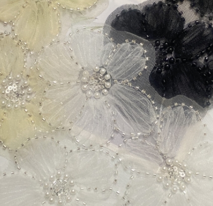 新款网纱立体花珠子花朵DIY时尚女装童装礼服演出服婚纱头饰辅料