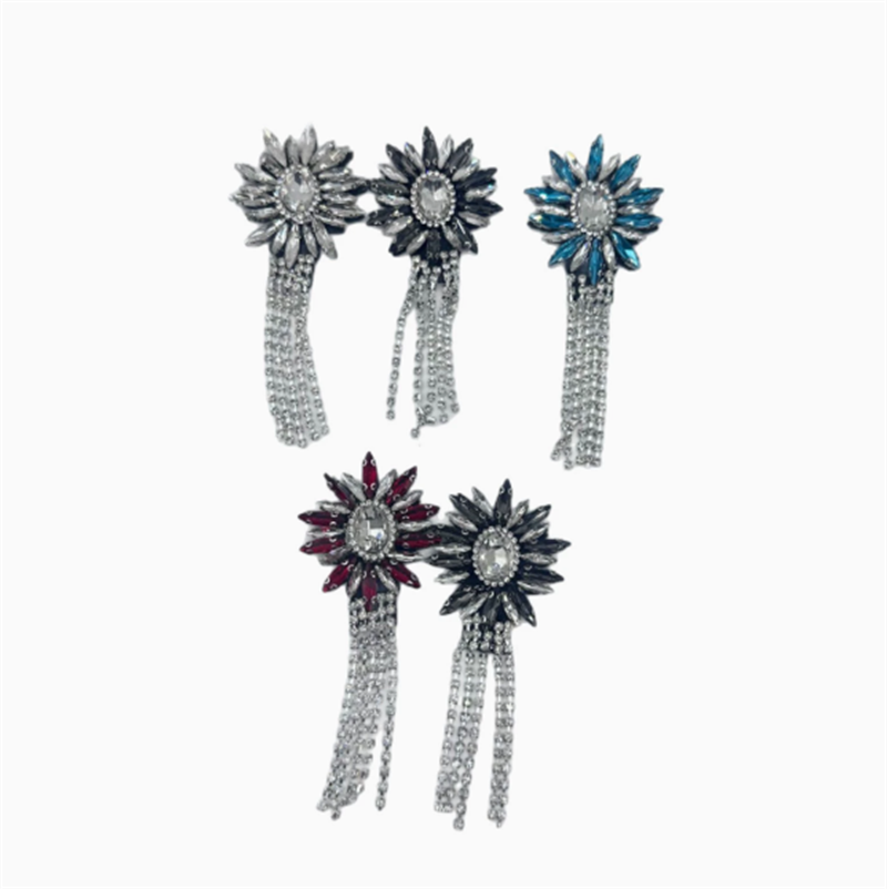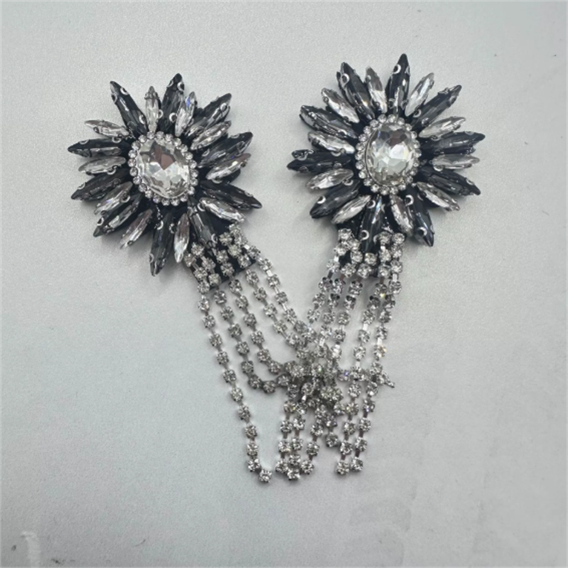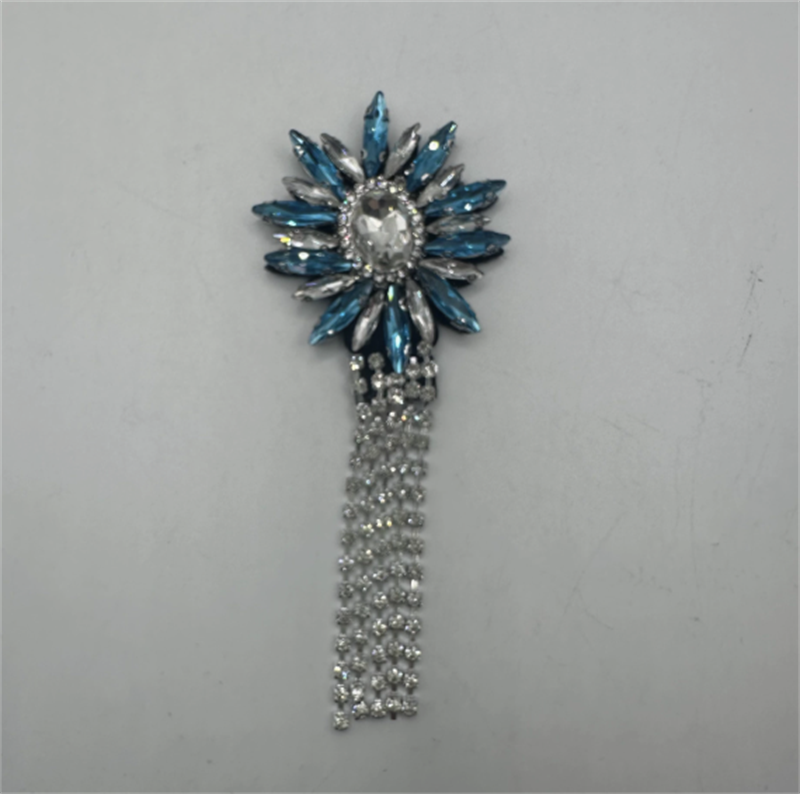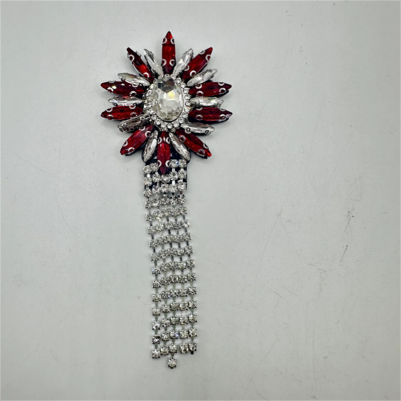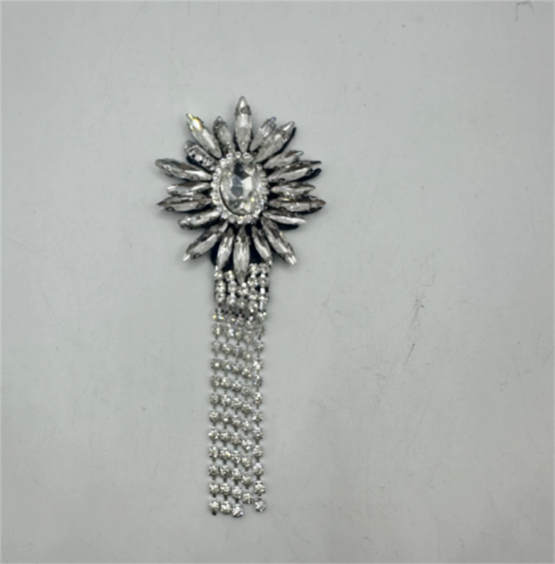 新款花盘流苏流苏链条水钻胸针水晶胸花DIY手工电镀女包服装饰品