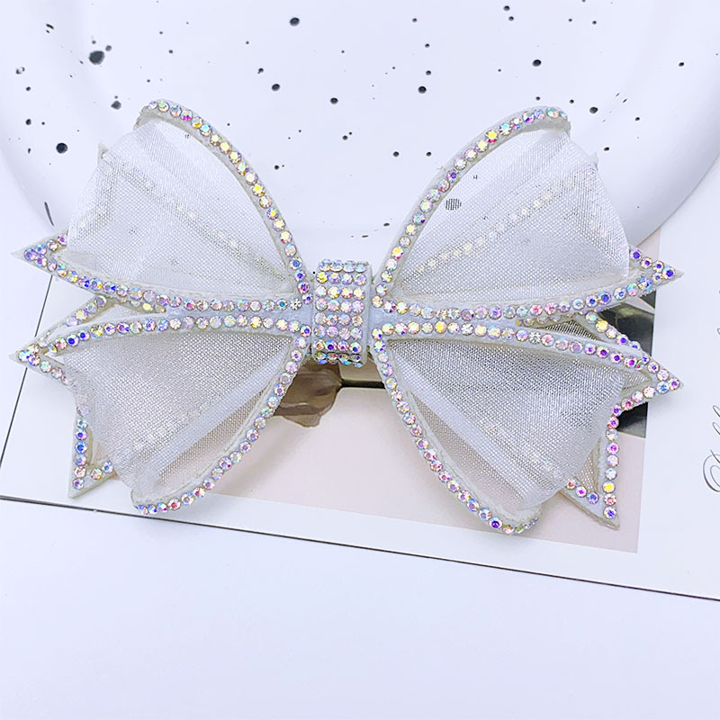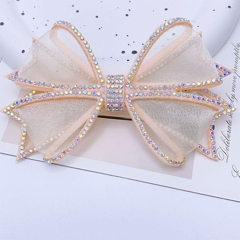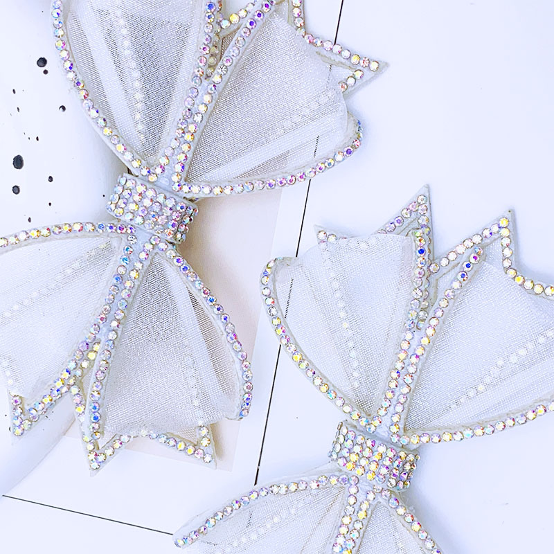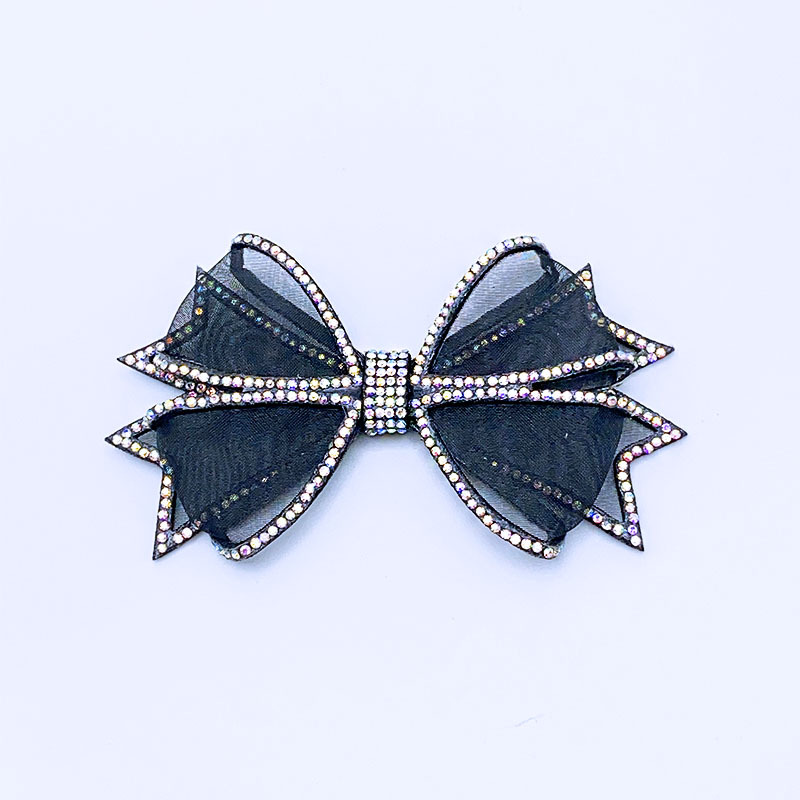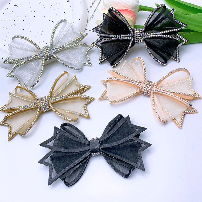 新款蝴蝶结水钻鞋花网纱烫钻DIY鞋配件配饰高档鞋鞋扣批发 双层