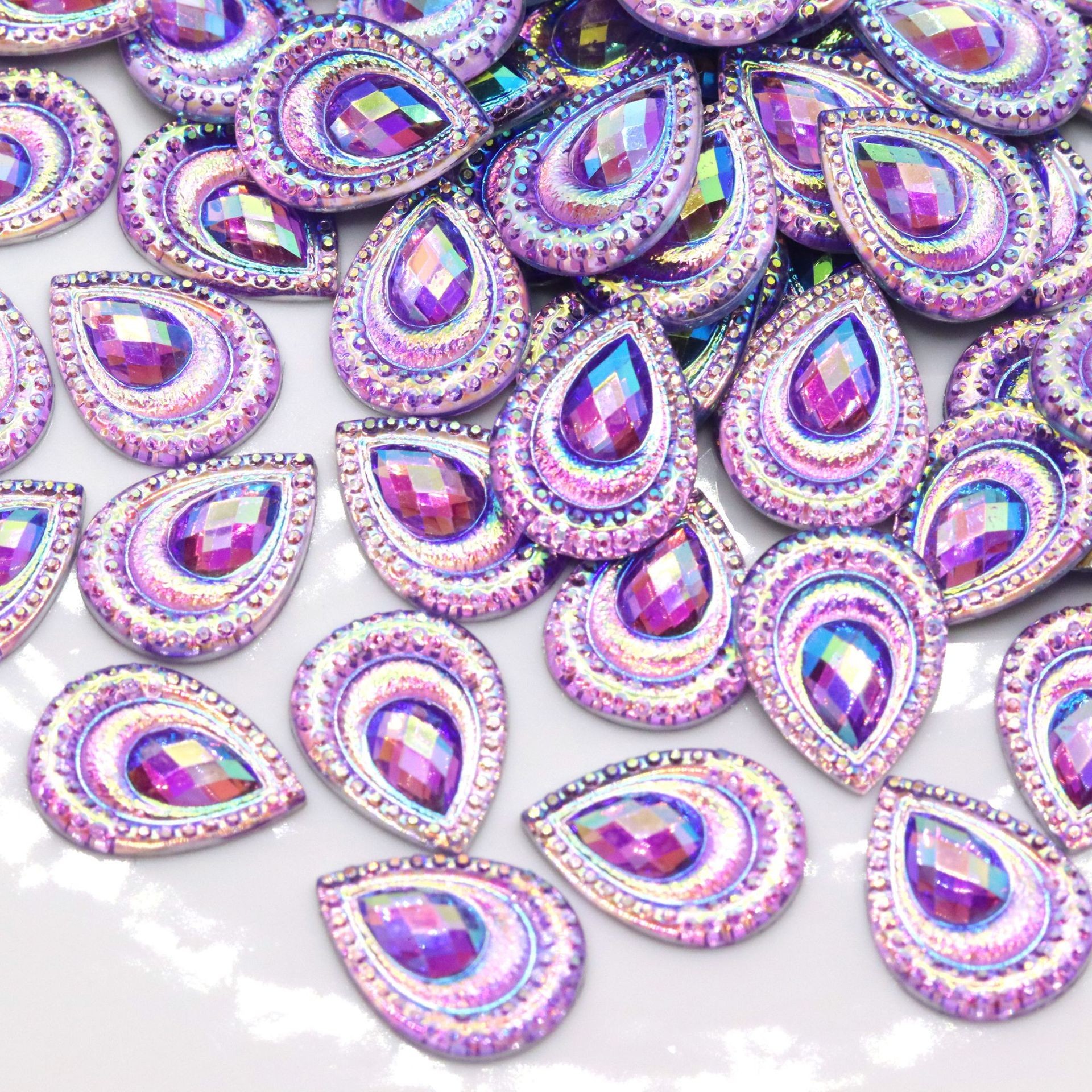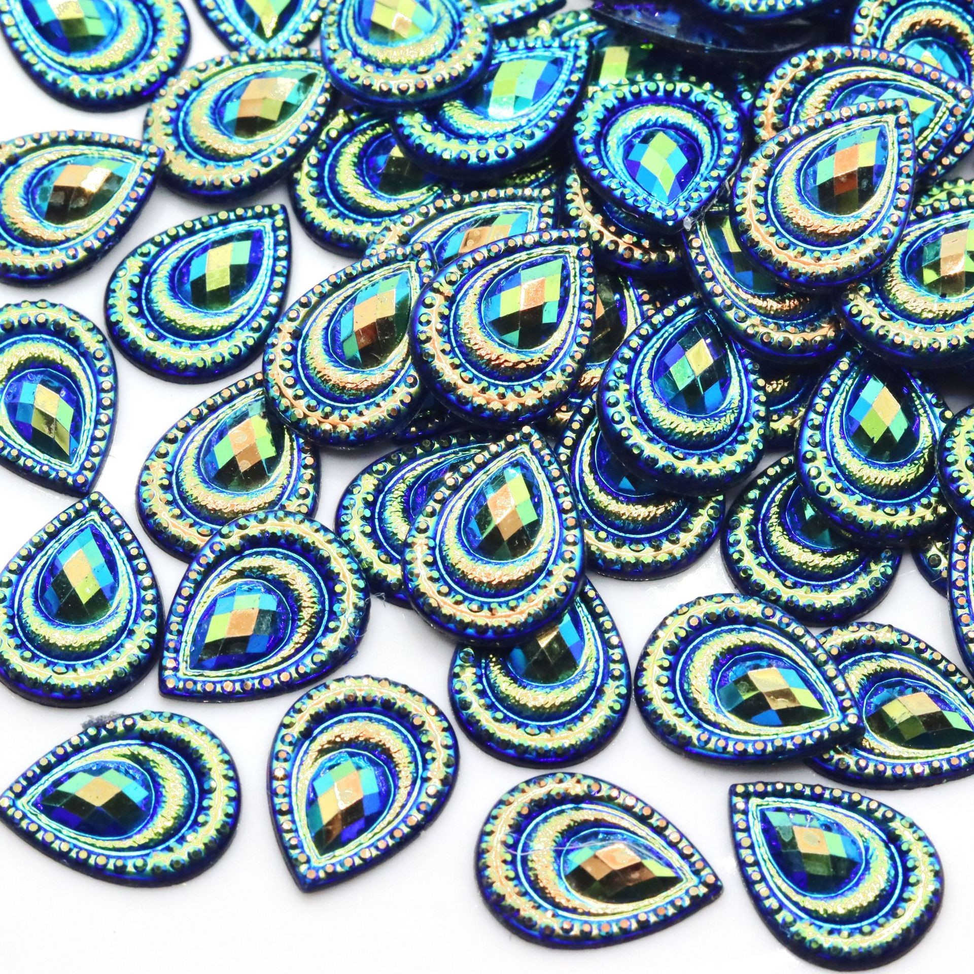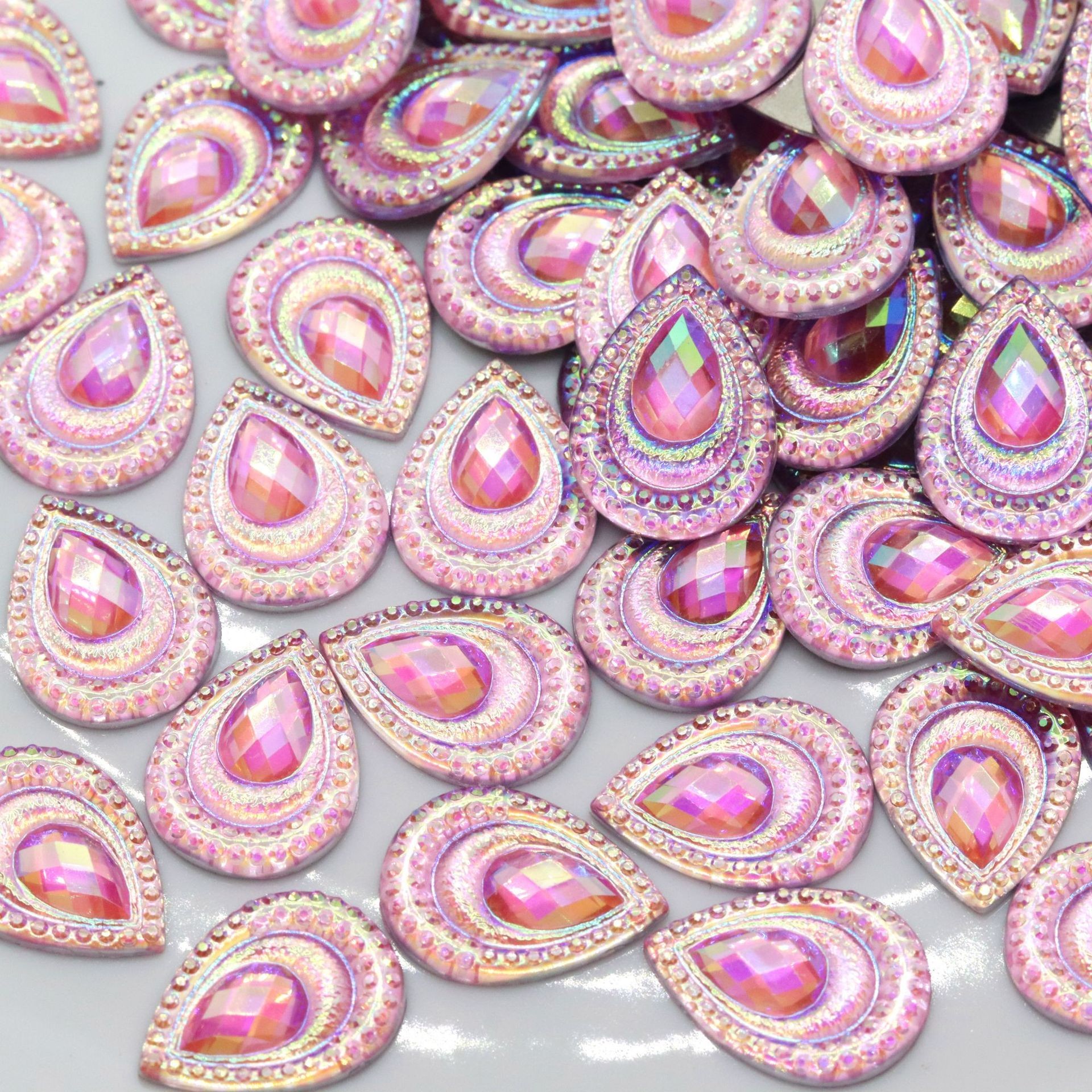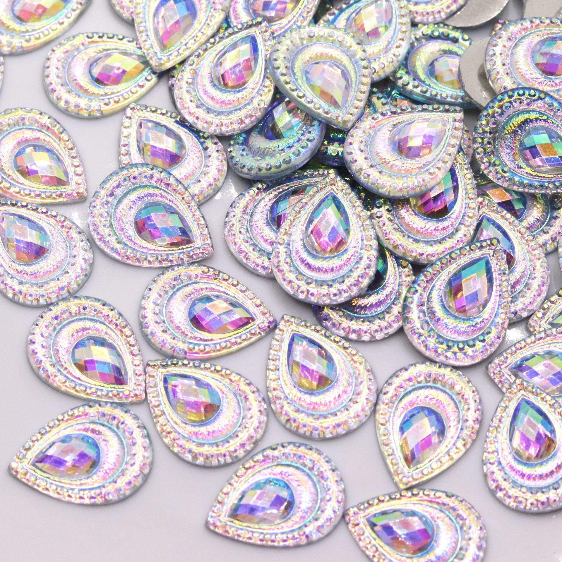 新款跨境水滴形树脂钻13*18mm凤尾钻平底钻diy装饰饰品配件