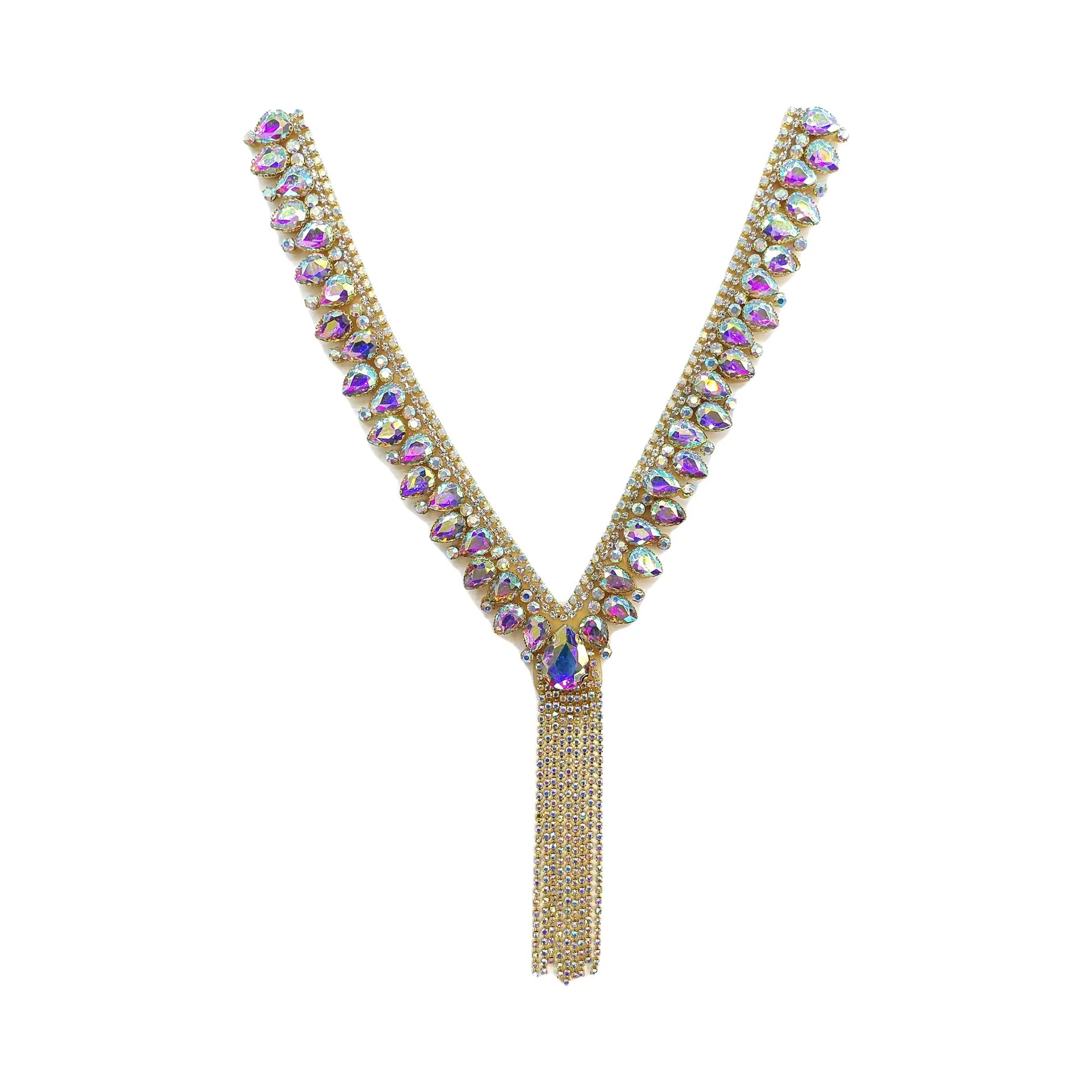 新款重工钉珠璀璨钻石满钻项链 礼服西装高雅气质饰品配件