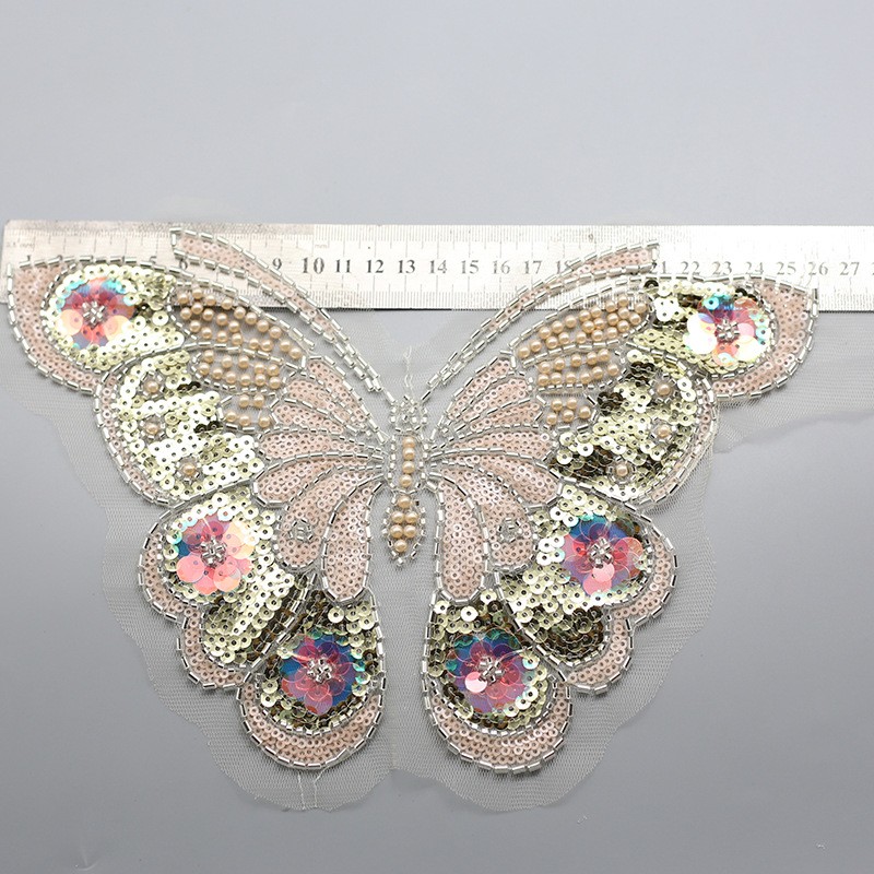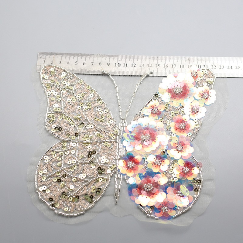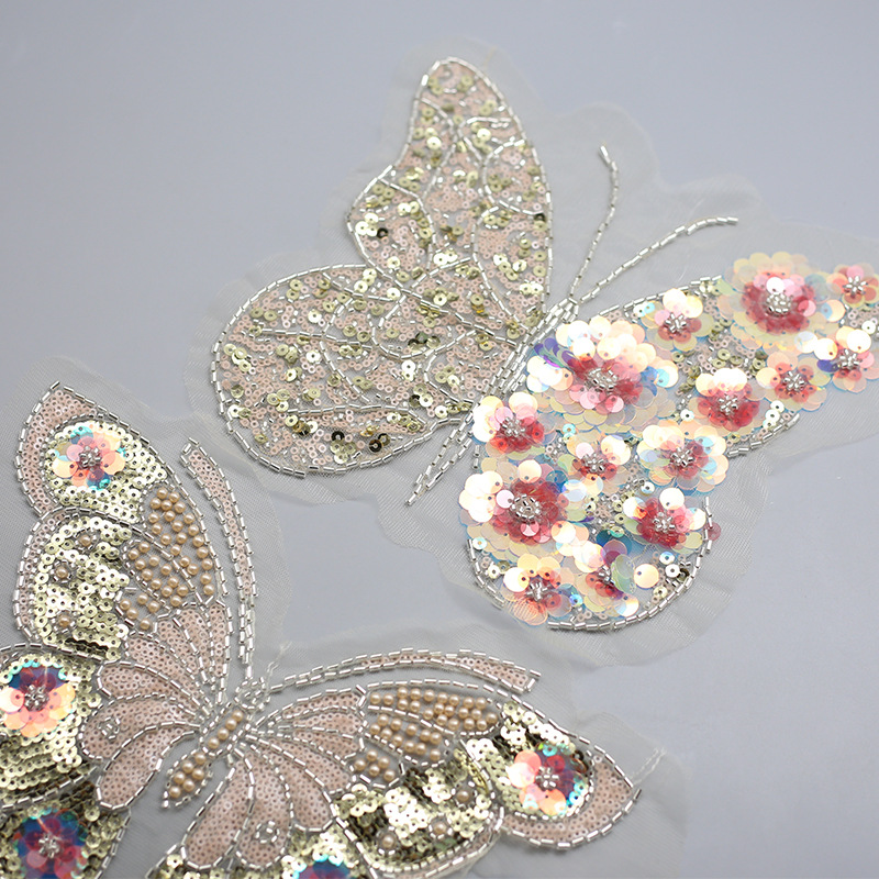 • 新款钉珠亮片刺绣蝴蝶布贴缝纫补丁绣片珠片服装包包装饰配件材料