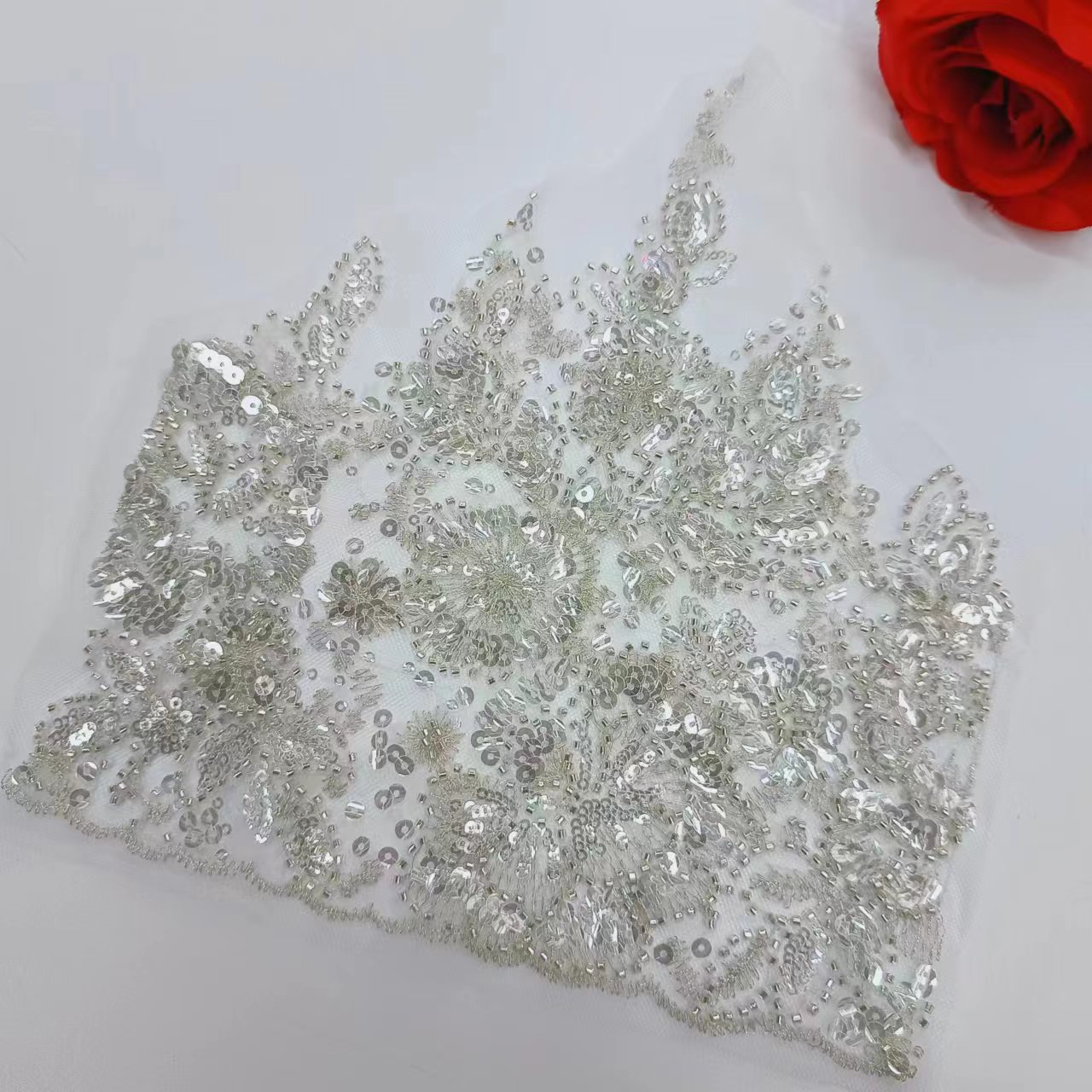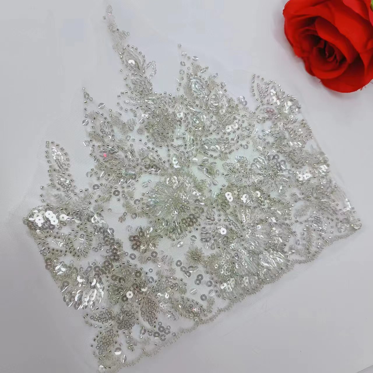 新款银灰金色奢华重工亮片珠片蕾丝花个装饰DIY牛仔系列服装辅料