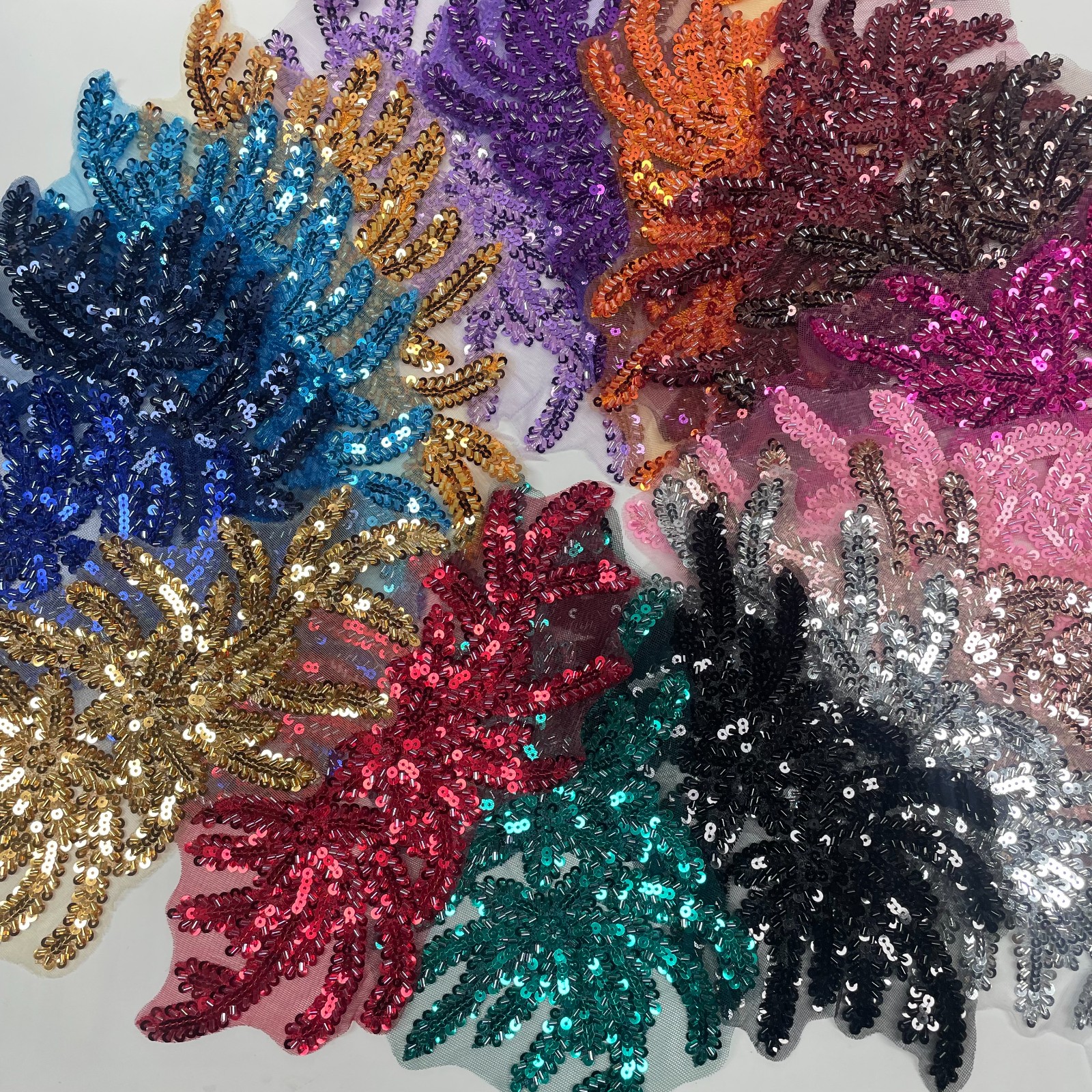 • 新款高端刺绣多色珠片补丁重工diy布贴服饰花个婚纱花边配件
