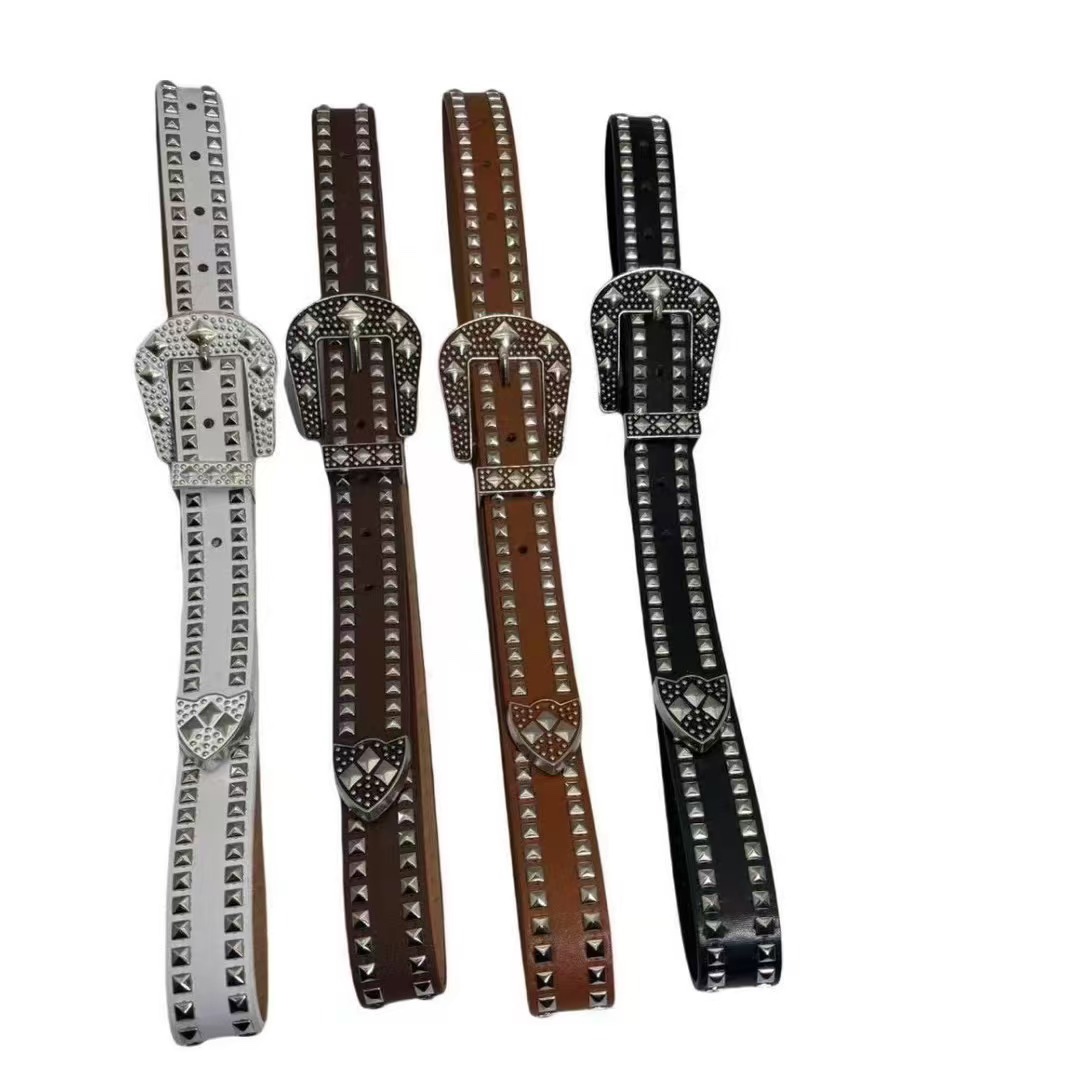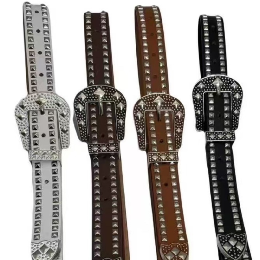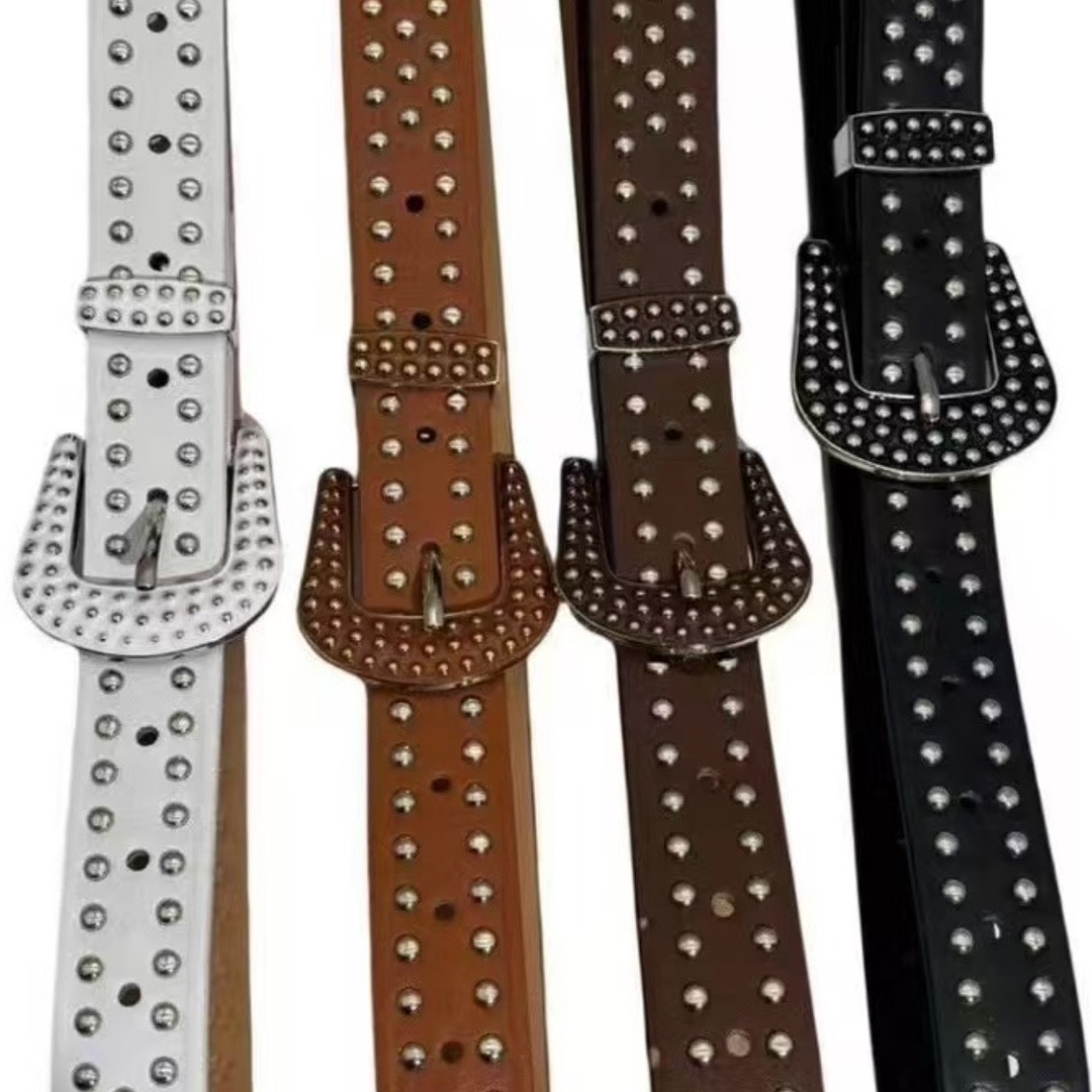 • 朋克铆钉爪珠腰带 复古雕刻学生牛仔腰带