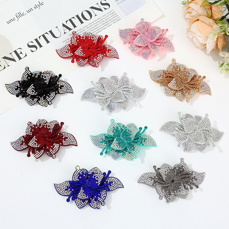 服装服饰辅料批发多色水钻水晶兰花形布贴