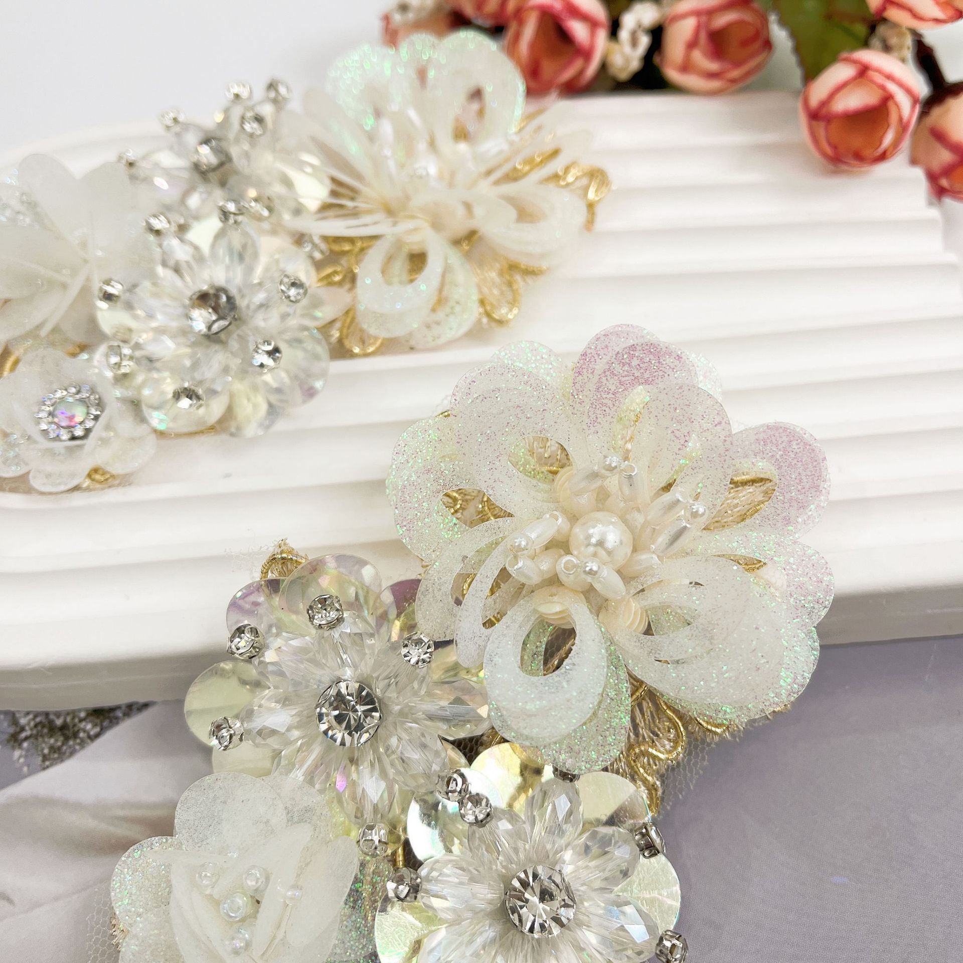 服装辅料立体花朵网纱涤纶粘花花边蕾丝衣领刺绣缝纫DIY单花配件