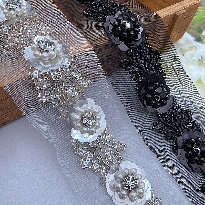 机绣米珠蕾丝手工钉珠亮片珍珠花边辅料女装装饰