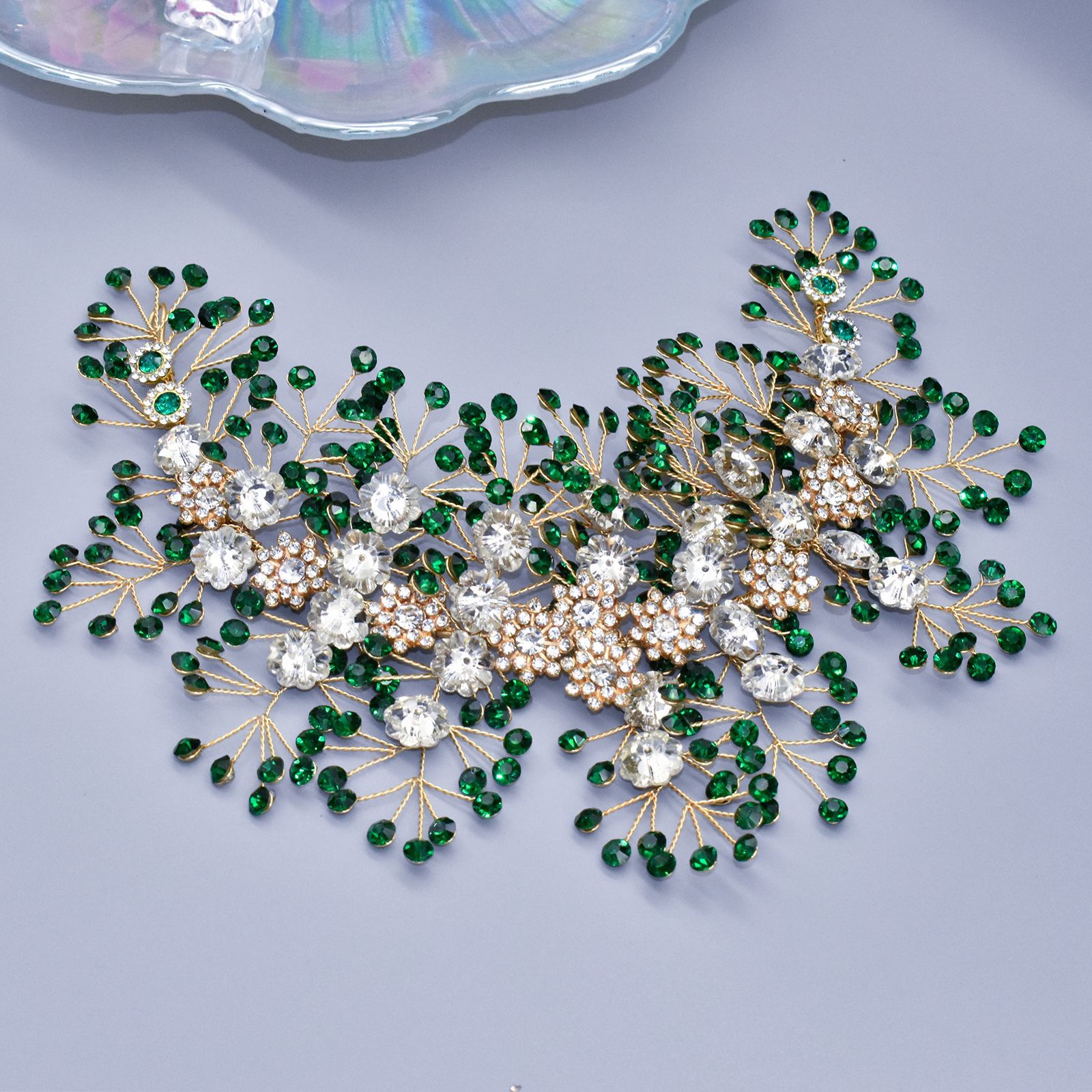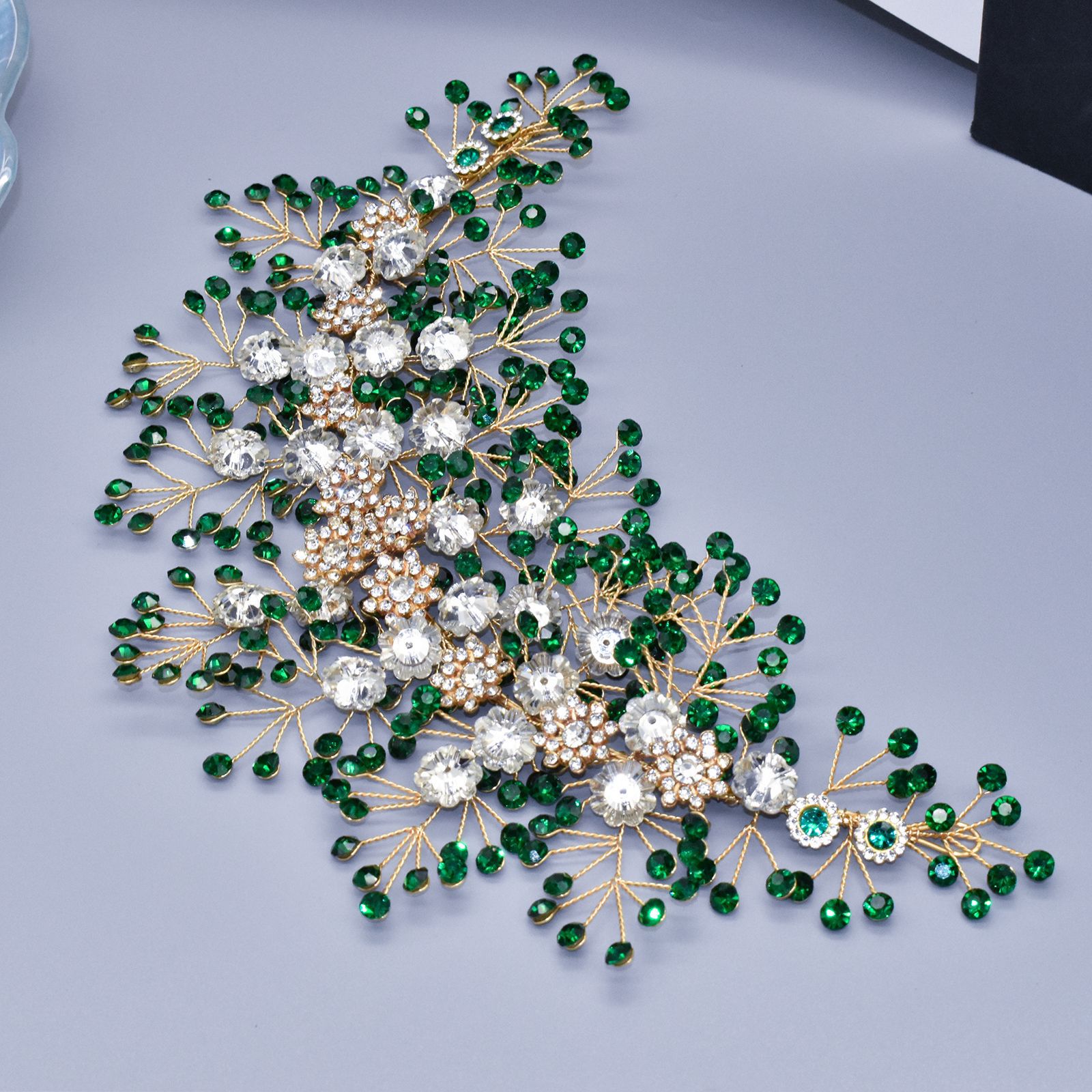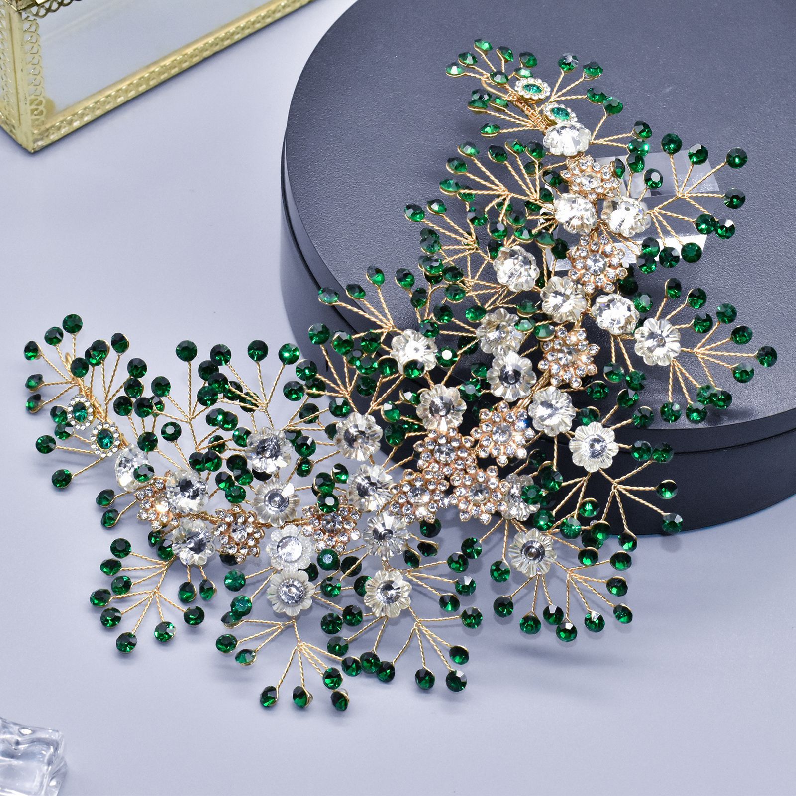 欧美手工水钻软发带头饰 新娘压发头箍绿色发冠婚礼演出发饰