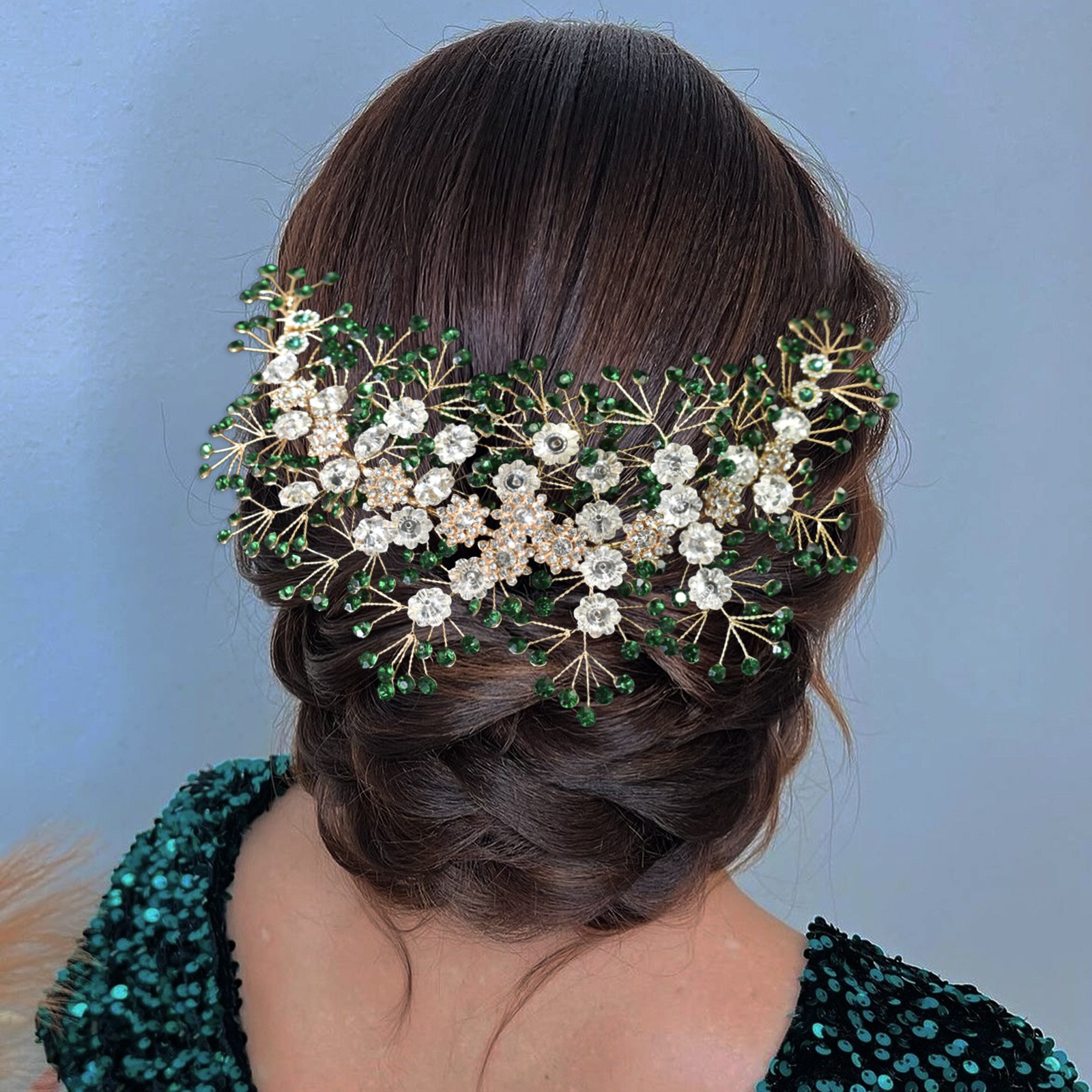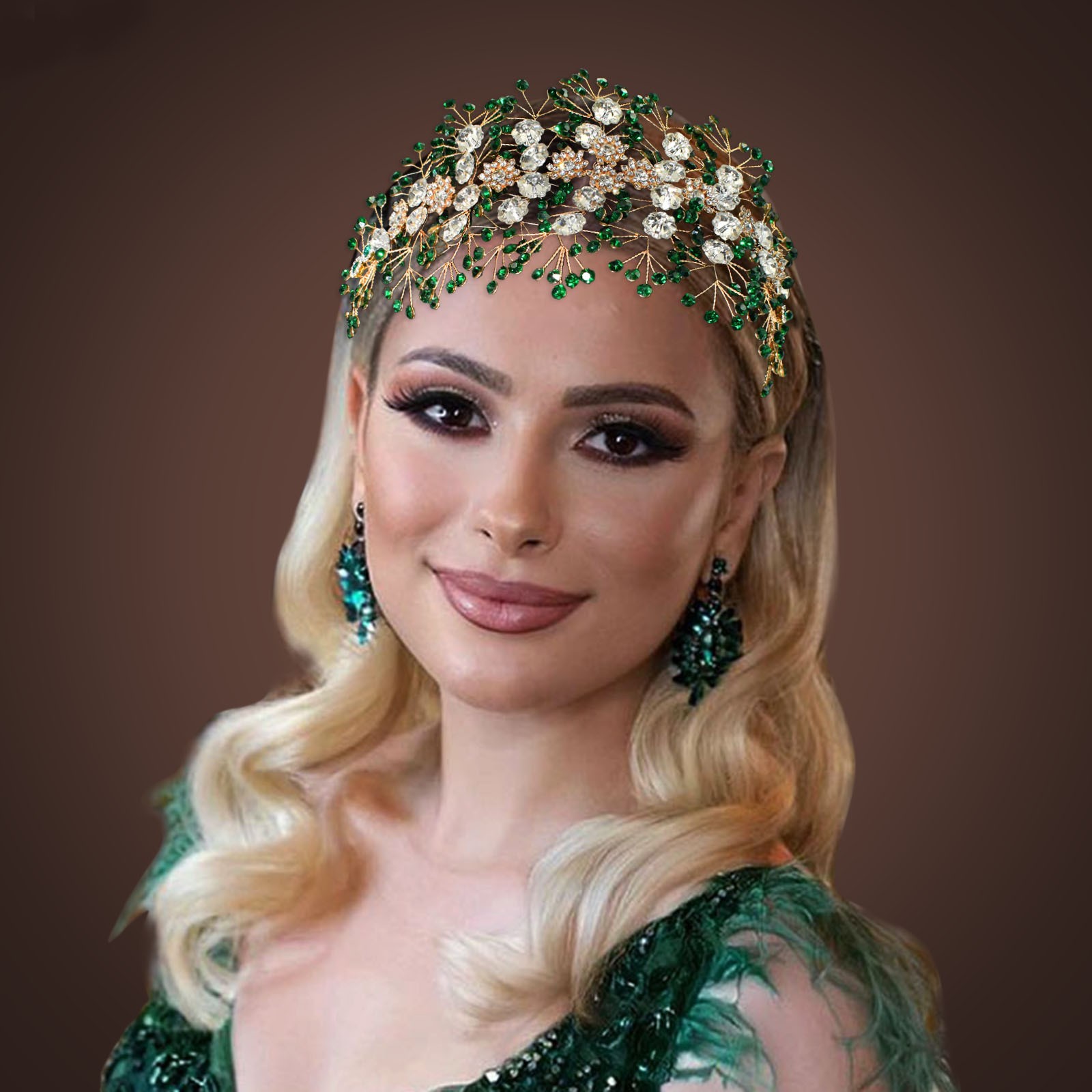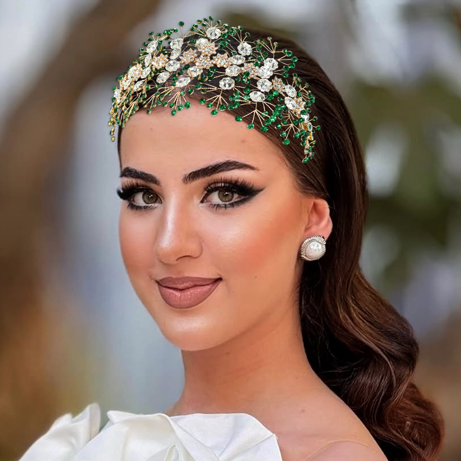 欧美手工水钻软发带头饰 新娘压发头箍绿色发冠婚礼演出发饰