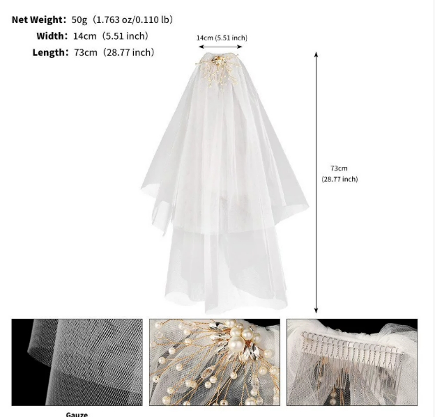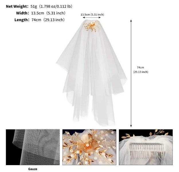 欧美时尚新娘头纱婚纱高级感配饰复古公主披纱发卡结婚领证头纱女