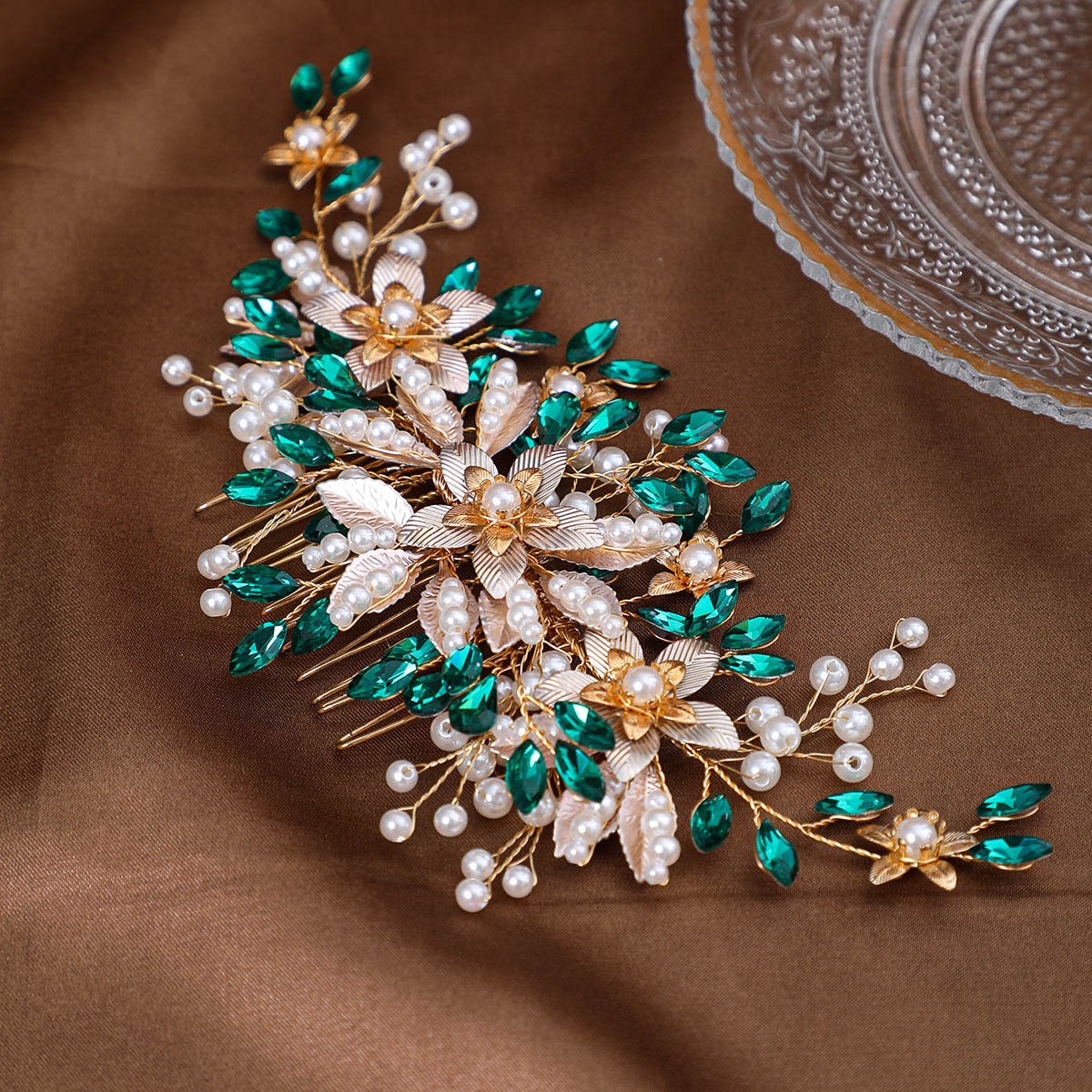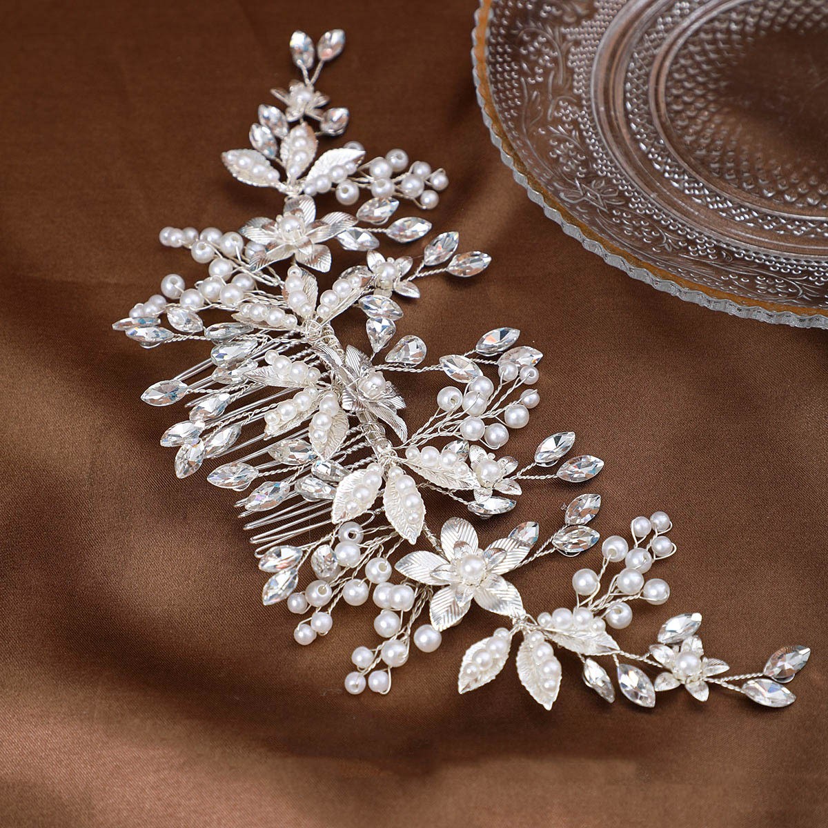 欧美珍珠发梳新娘头饰编织后脑勺水钻插梳盘发配饰婚纱造型发饰