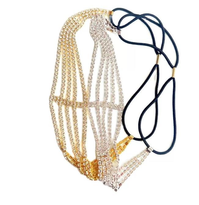 • 欧美跨境新款气质简约弹力多层水钻发带头饰时尚女款节日礼品发饰