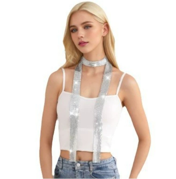 • 欧美辣妹金属亮片百搭围巾水钻闪亮个性围脖项链