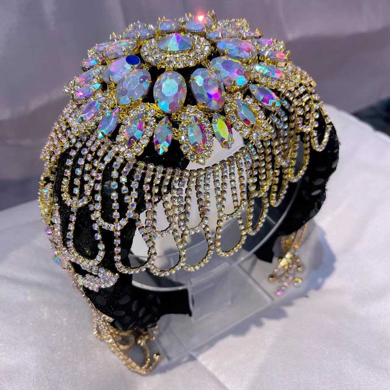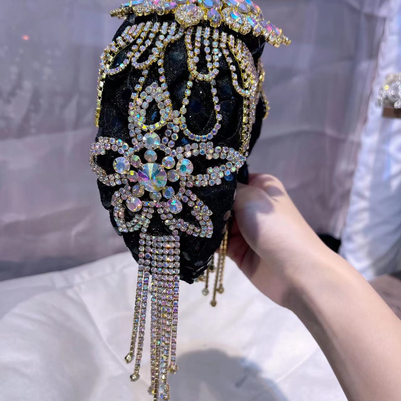 欧美重工奢华高级闪亮异域风情圆钻流苏显脸小发箍