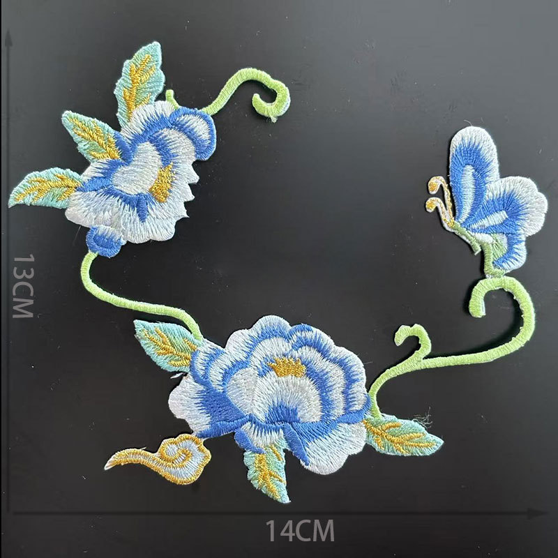 民族刺绣布贴牡丹花卉补丁贴熨烫贴