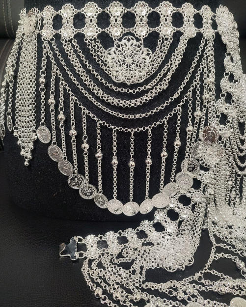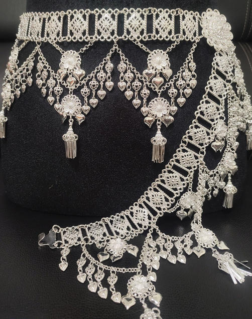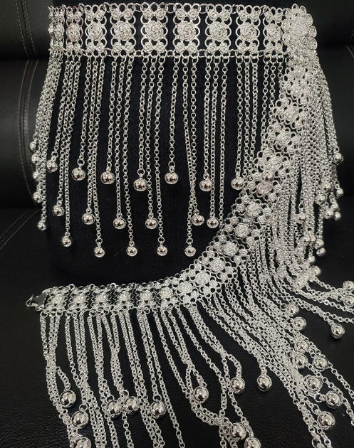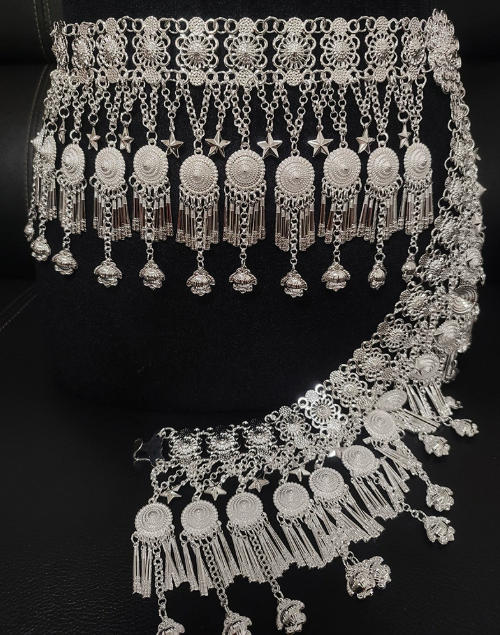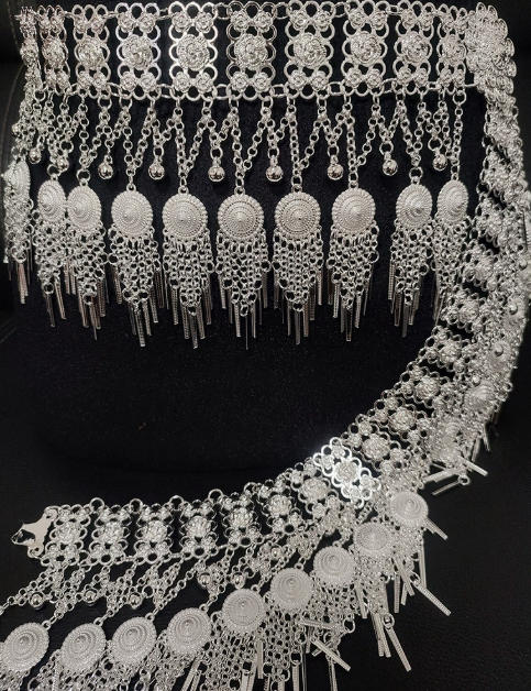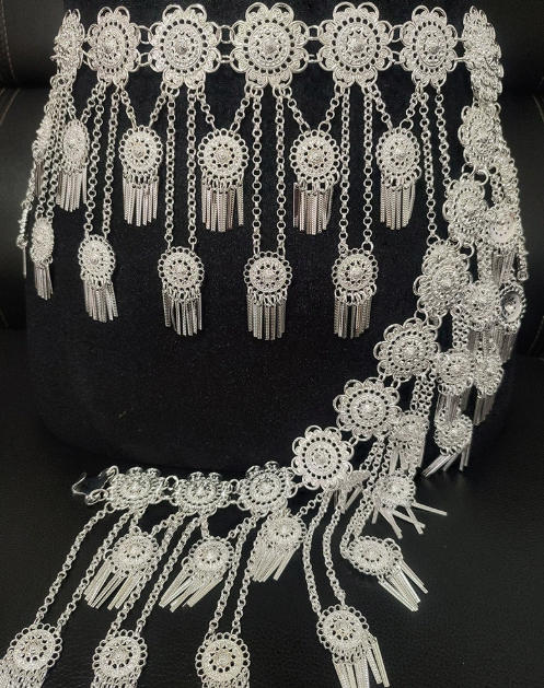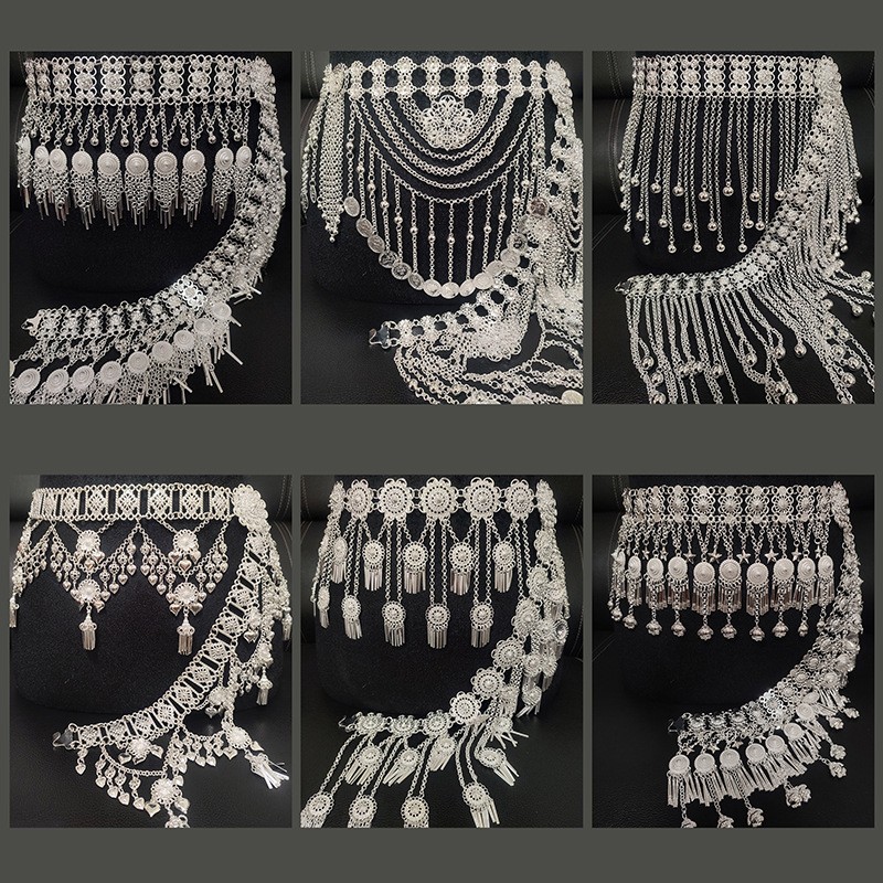 民族风百搭腰饰 苗侗族镀银腰链新款合金围腰链旅拍舞蹈腰封.