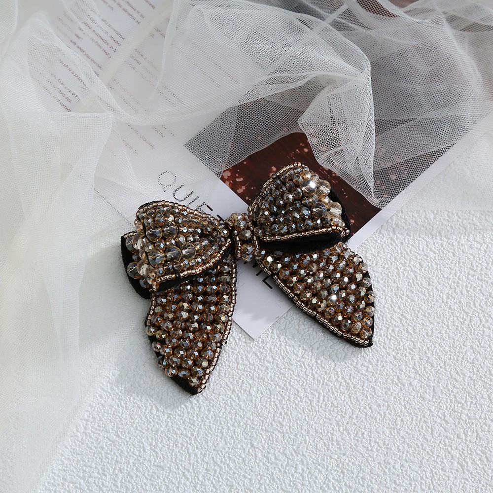 • 水晶串珠双米珠蝴蝶结头饰配饰服装饰品帽子配件批发