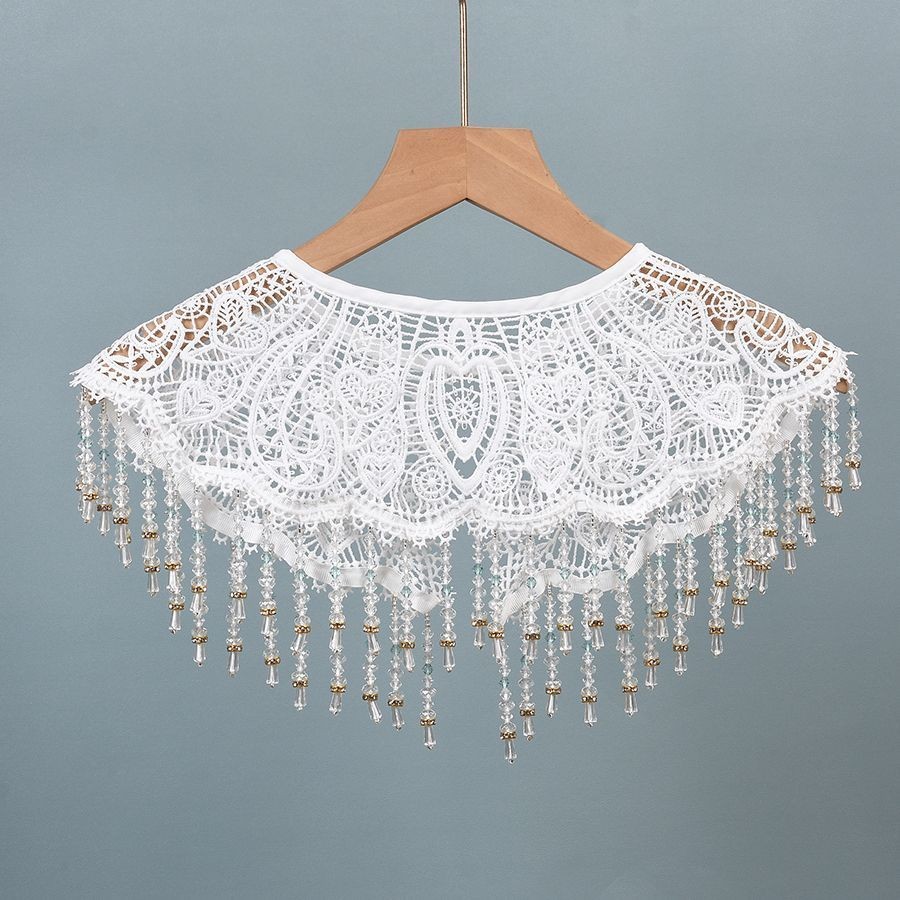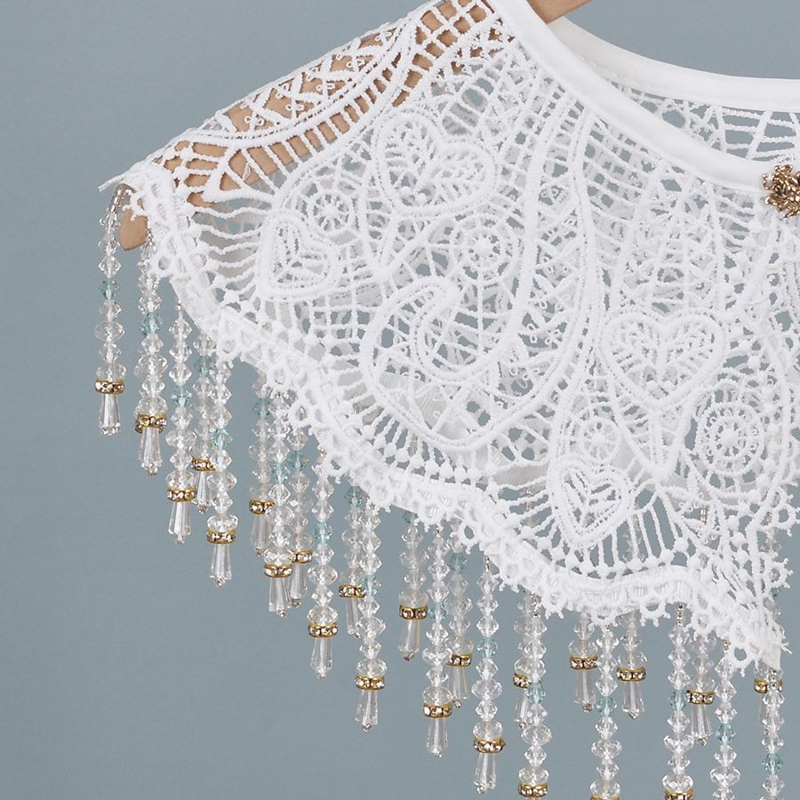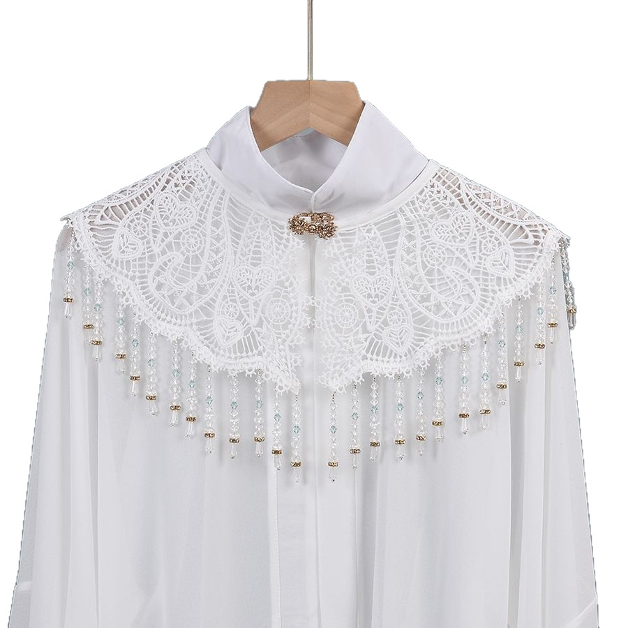 • 水晶吊坠旗袍披肩绣花镂空花边衣领女装饰。