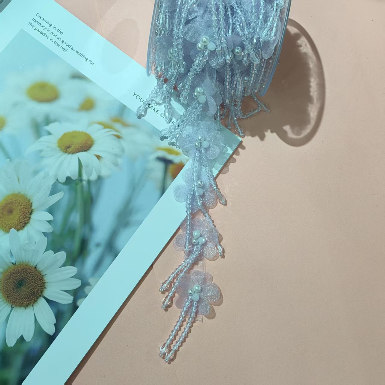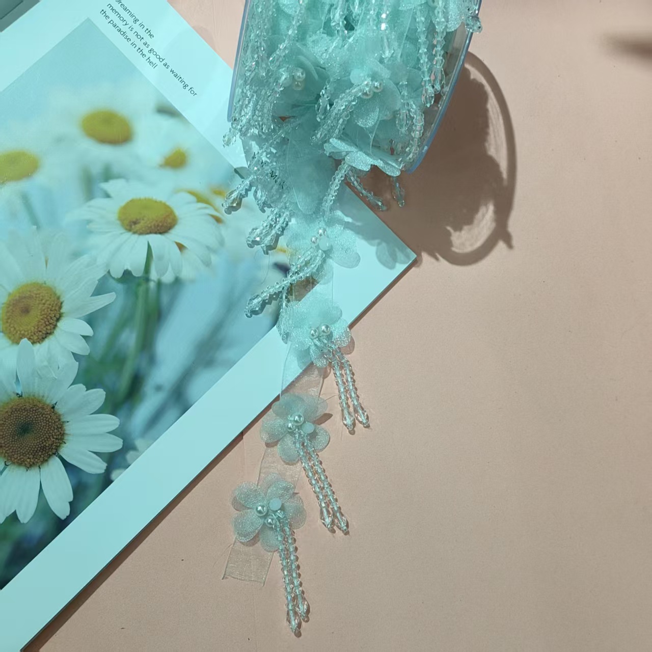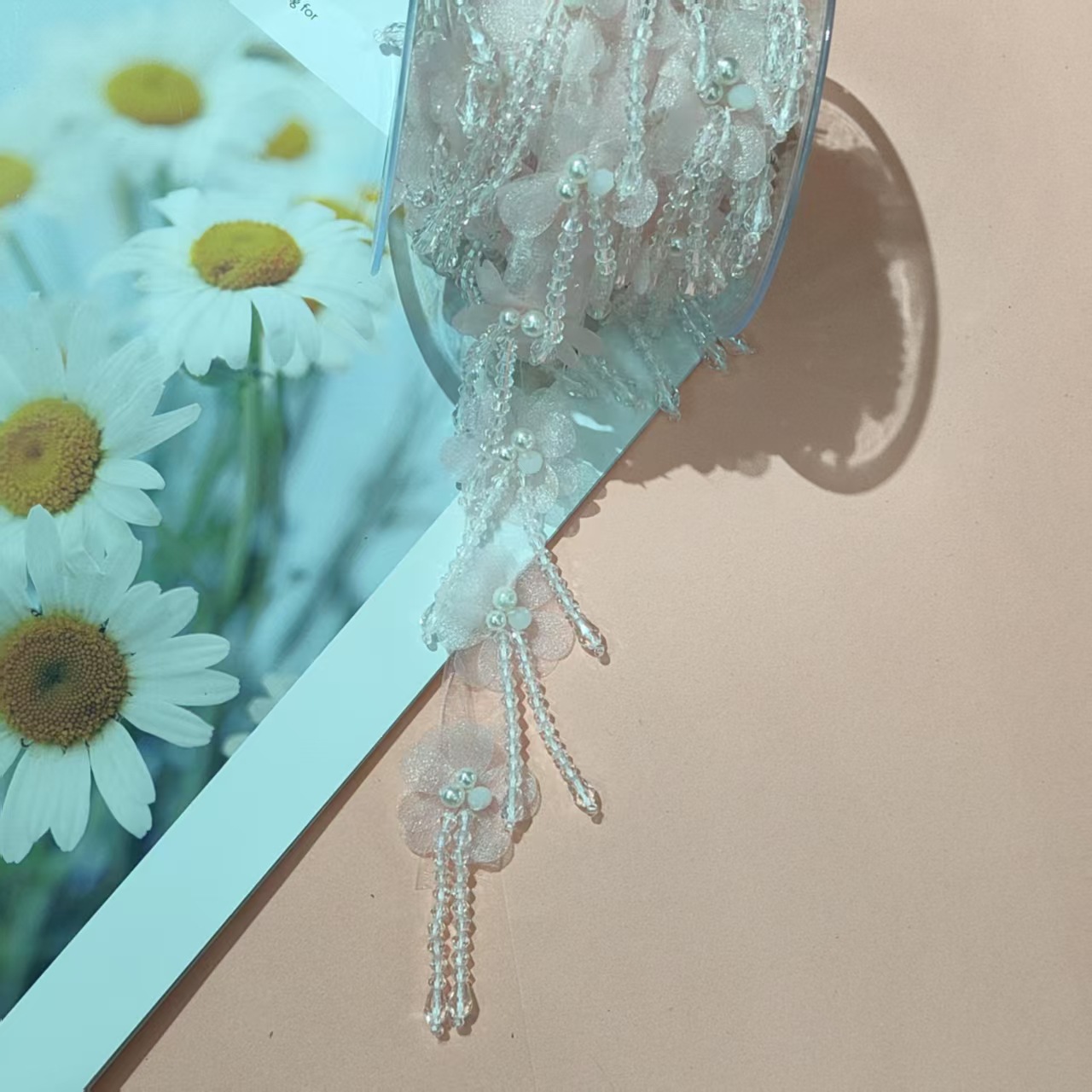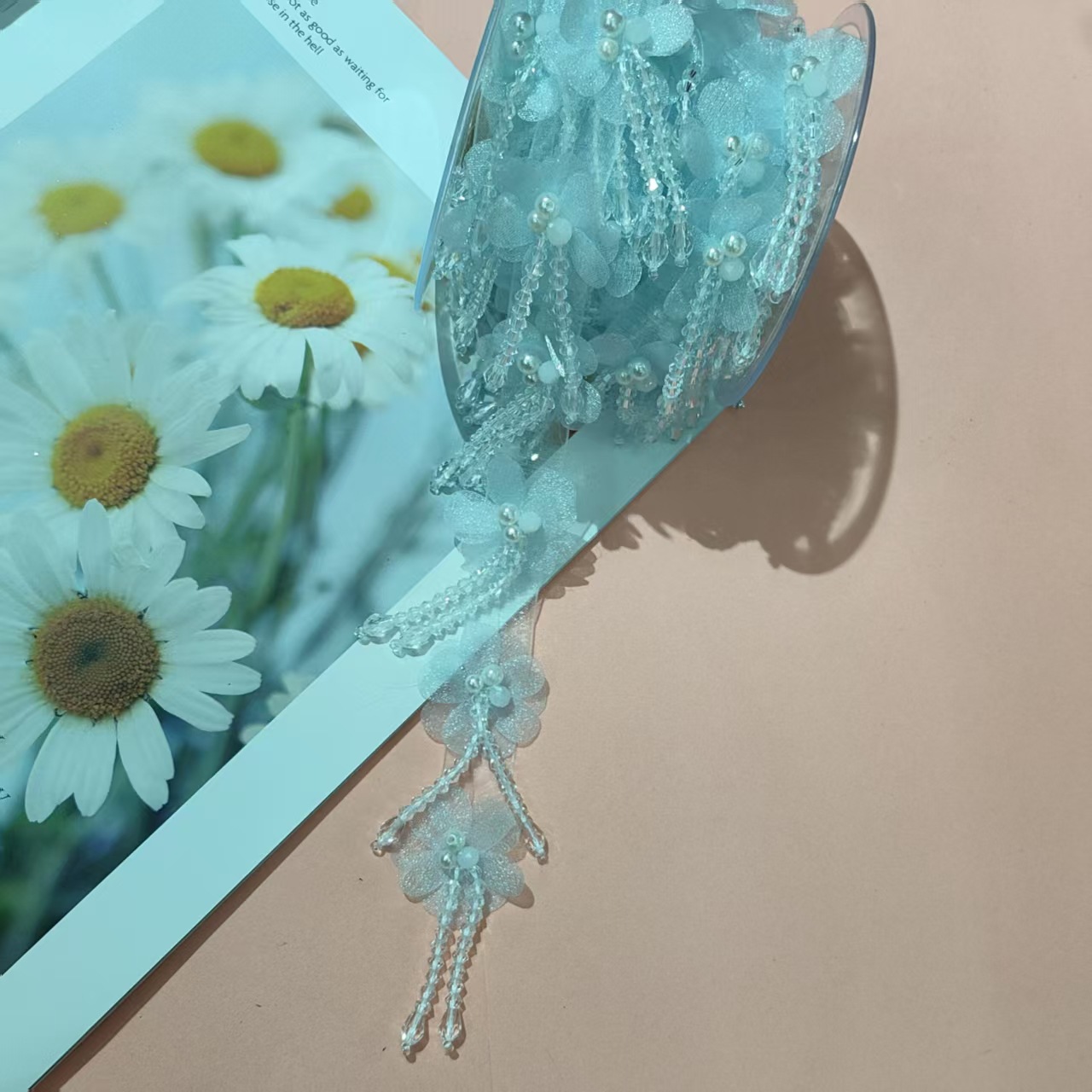 水晶流苏小花欧根纱叠片装饰汉服帽子鞋花辅料