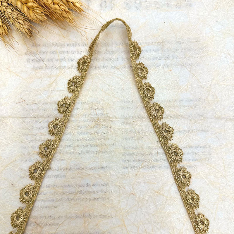 • 水溶金线狗牙花边 单边刺绣水溶花边 洛丽塔跨境服饰花边辅料现货