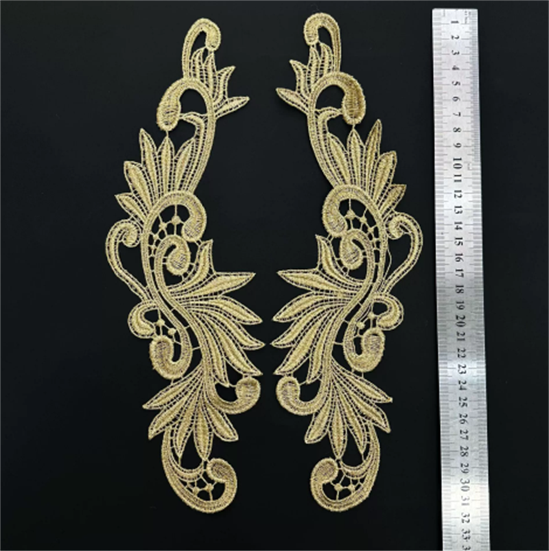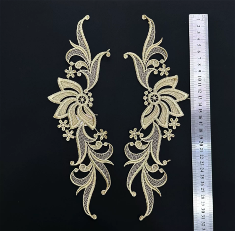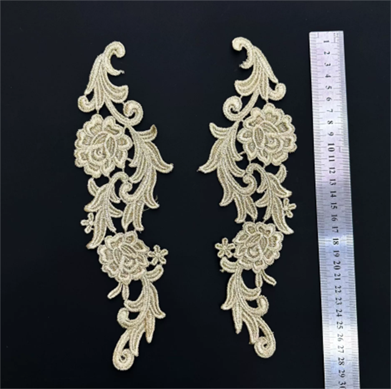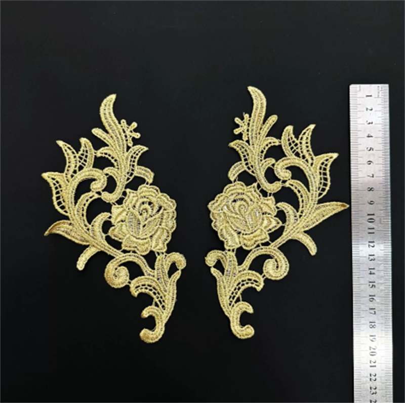 水溶金线绣花对花 镂空刺绣对花 金色绣花对花 外贸服饰配饰