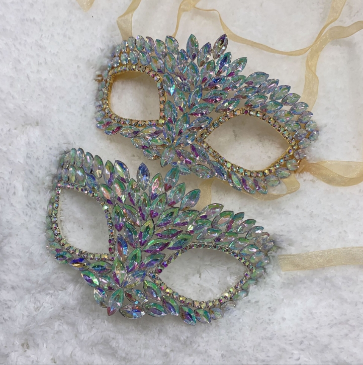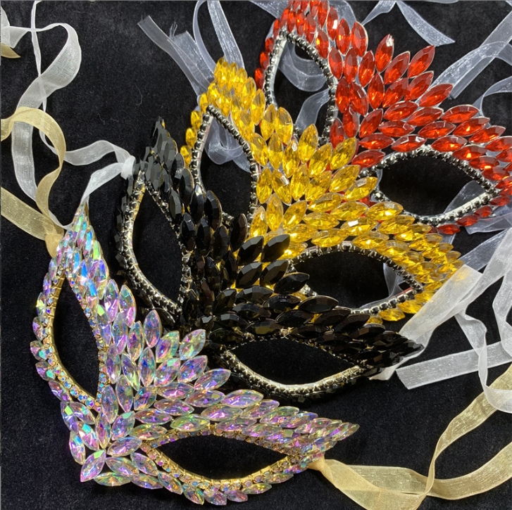 水钻镶钻面具欧美化妆舞会锆石水钻四色面具酒吧气氛面饰