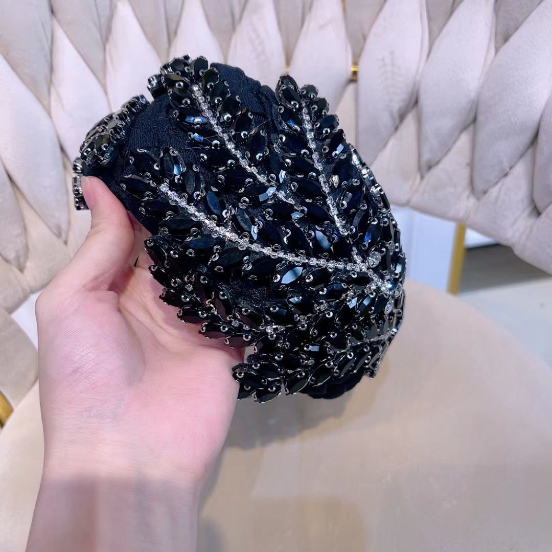 法式个性时尚枫叶满钻轻奢重工不规则压发舞会高级发箍