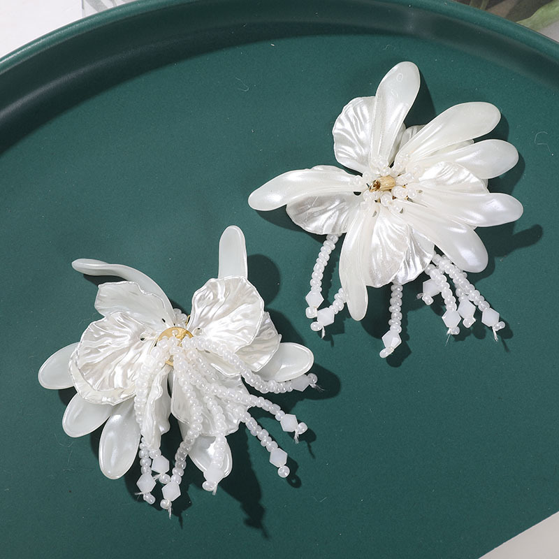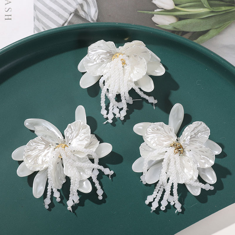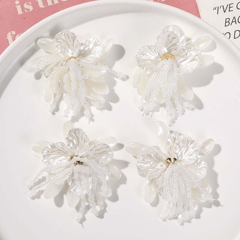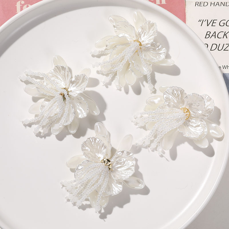 • 法式仙气珠光花瓣流苏吊坠diy手工编织串珠发夹发饰耳饰材料
