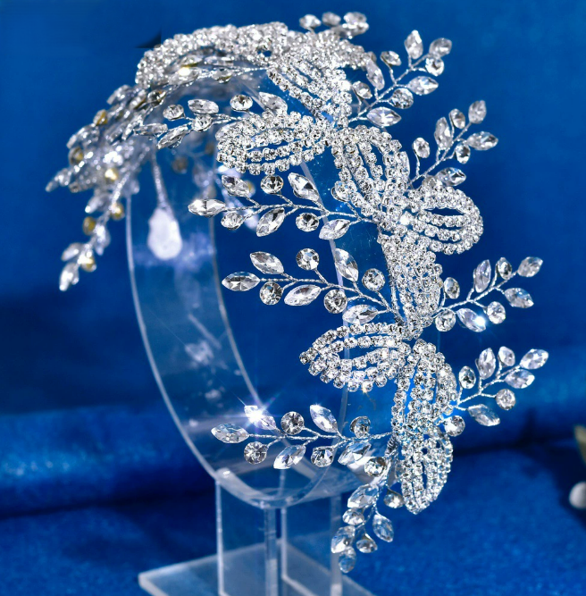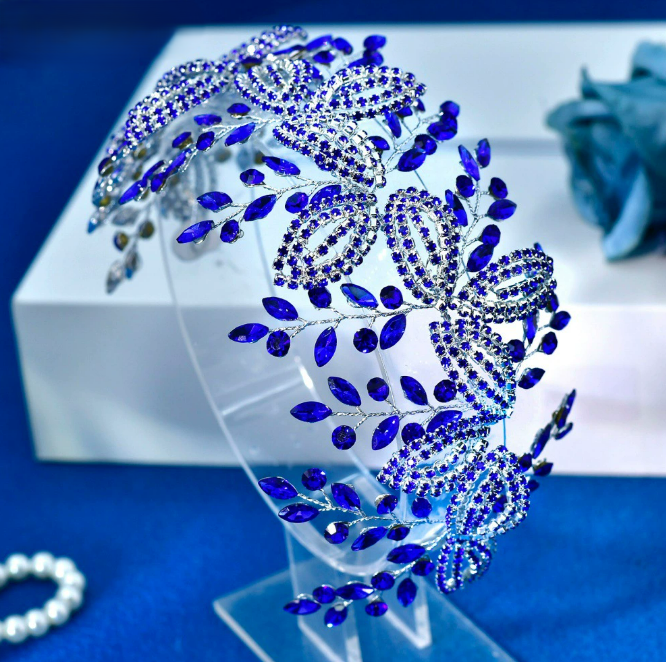 法式浪漫复古新娘发箍蓝色水钻精致头饰婚纱礼服配饰