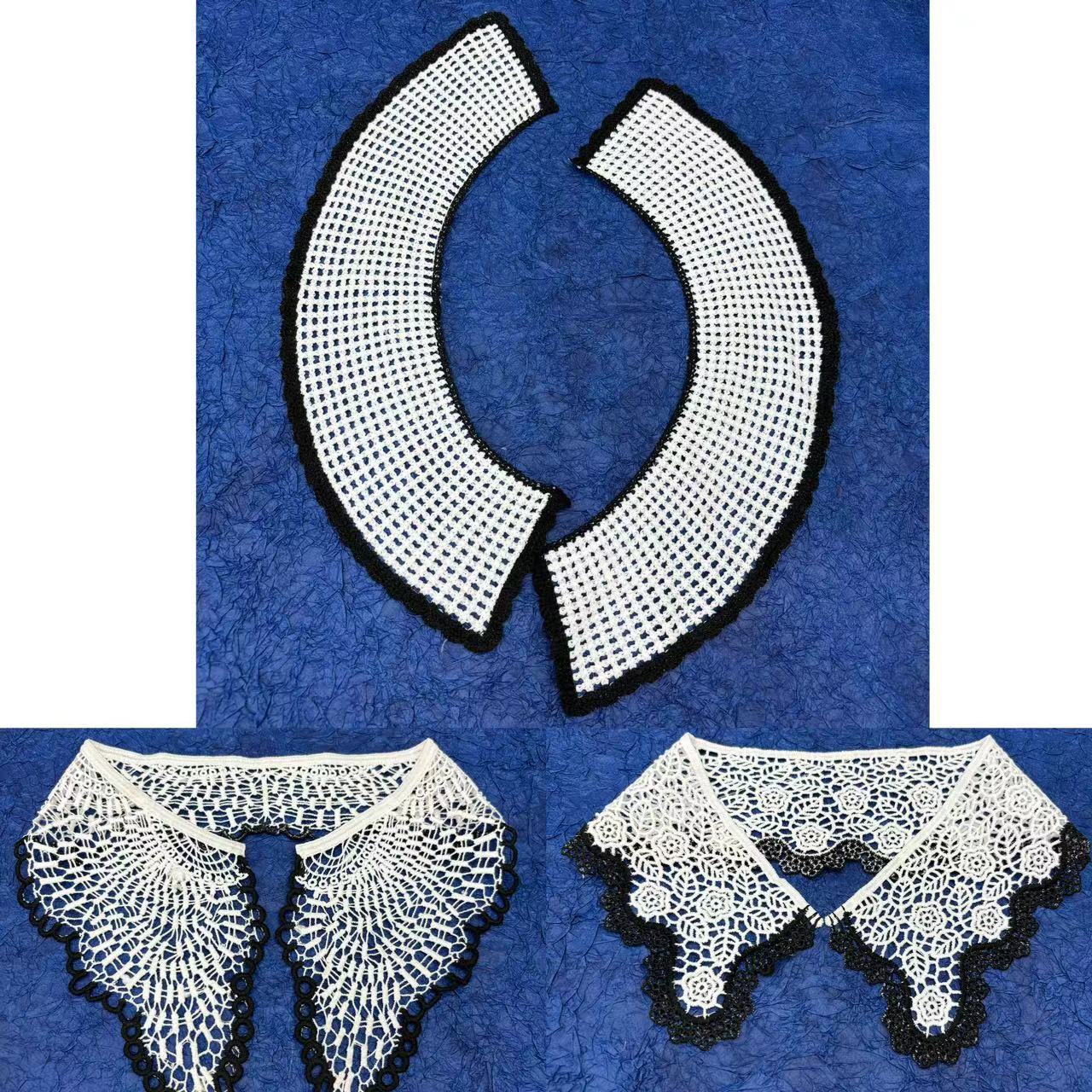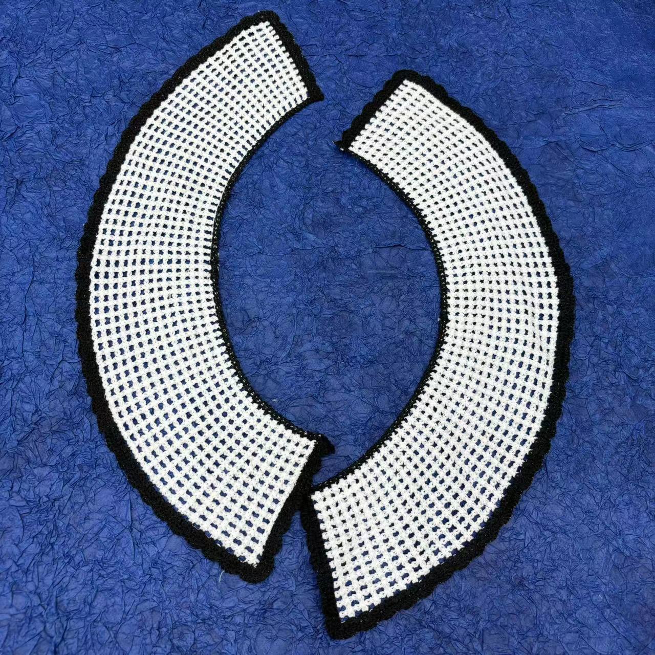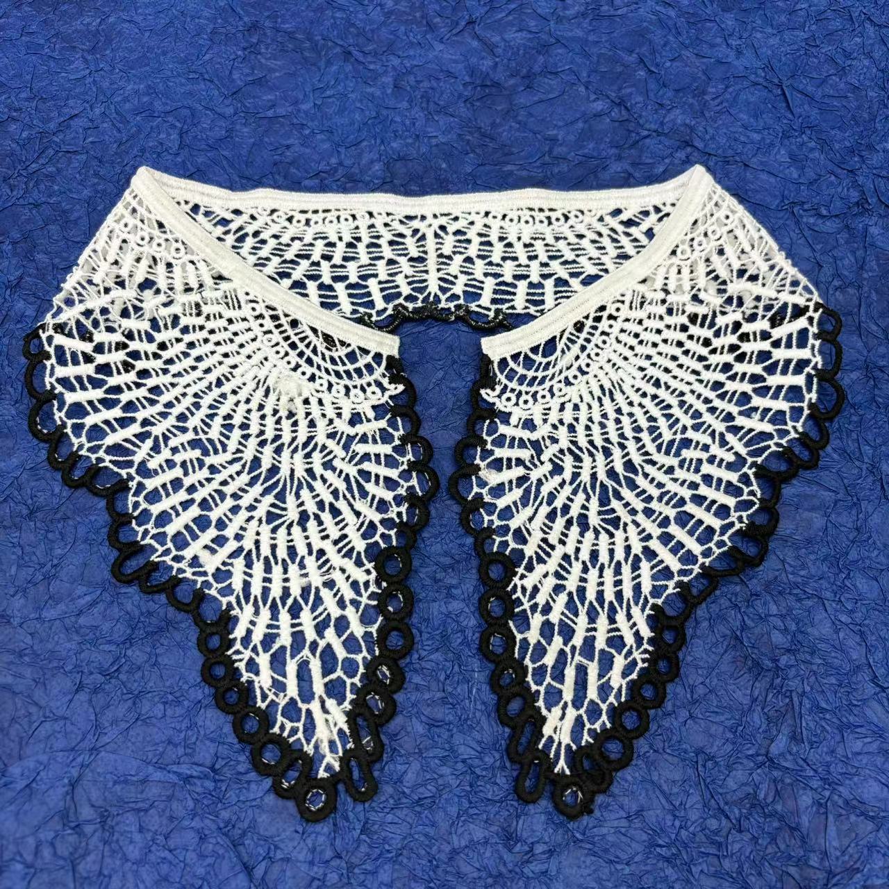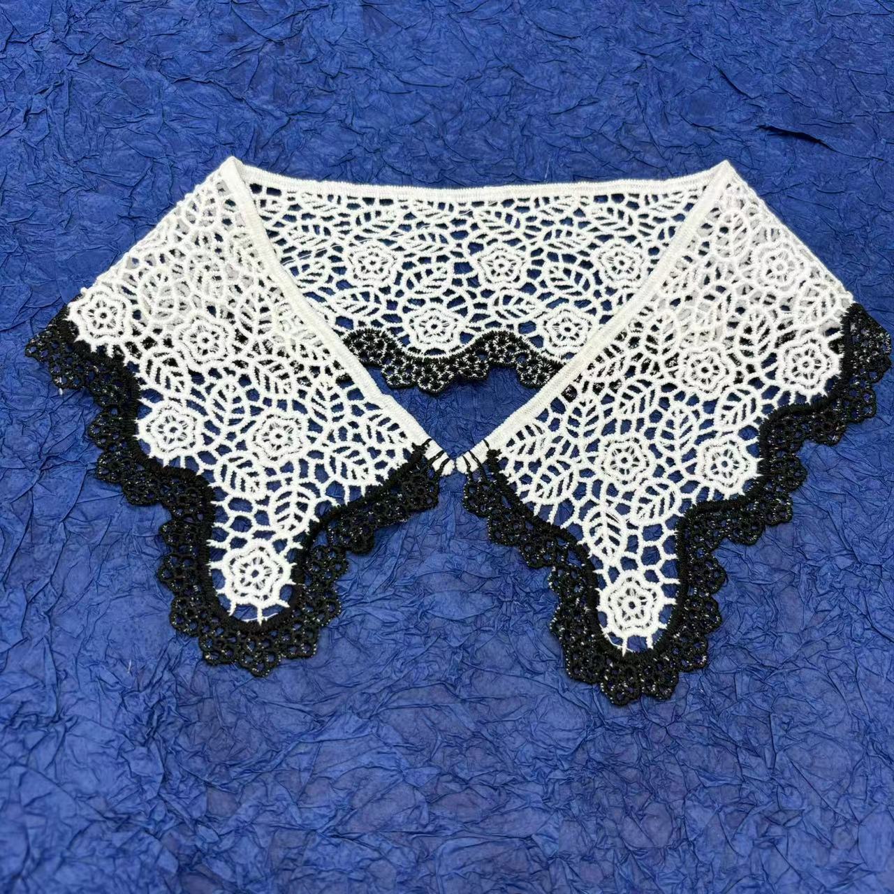 涤光牛奶丝镂空黑白拼接花纹假领子 对领领口花边